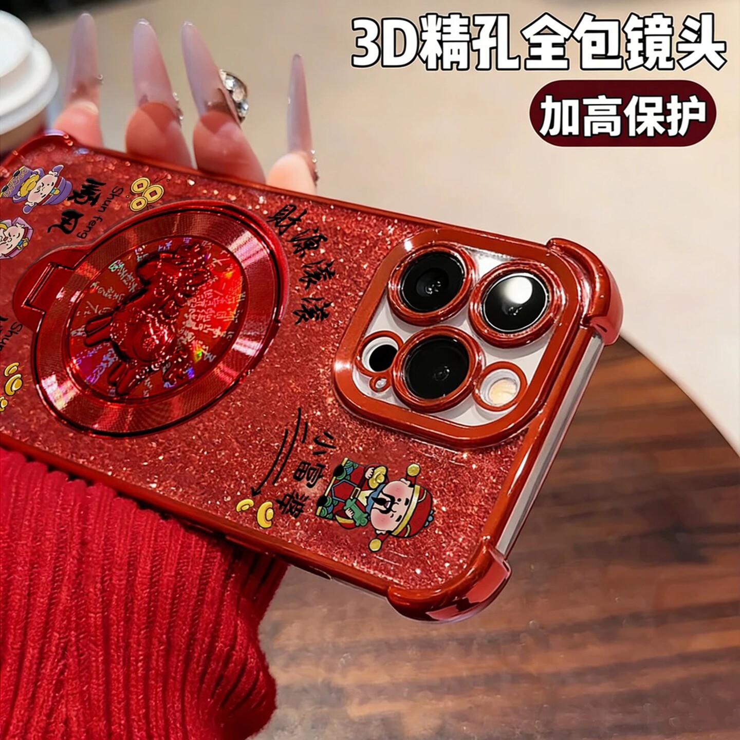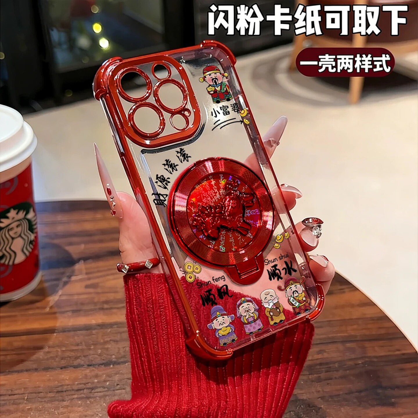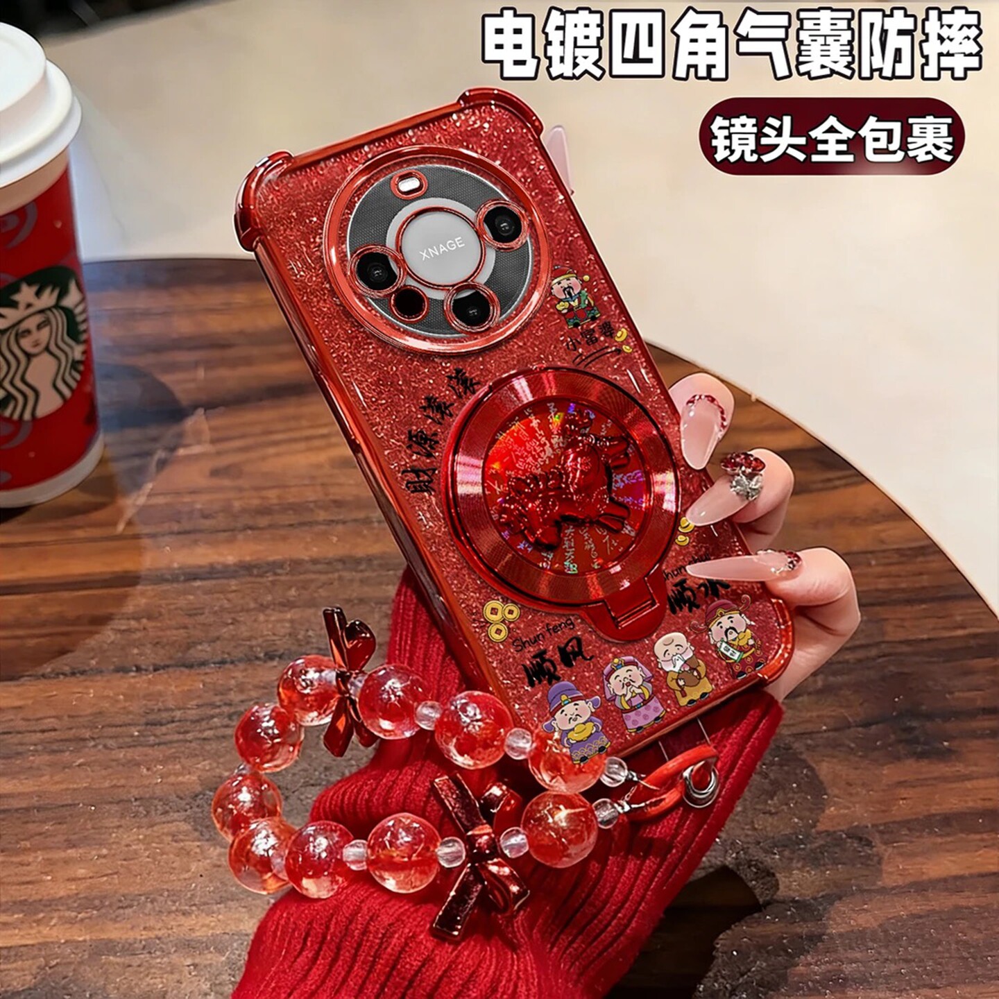 财源滚滚小富婆电镀防摔壳适用苹果15Pro手机壳新款简约华为荣耀OPPO外壳中国红硅胶带手链透明保护套女款 - 美壳优品数码店