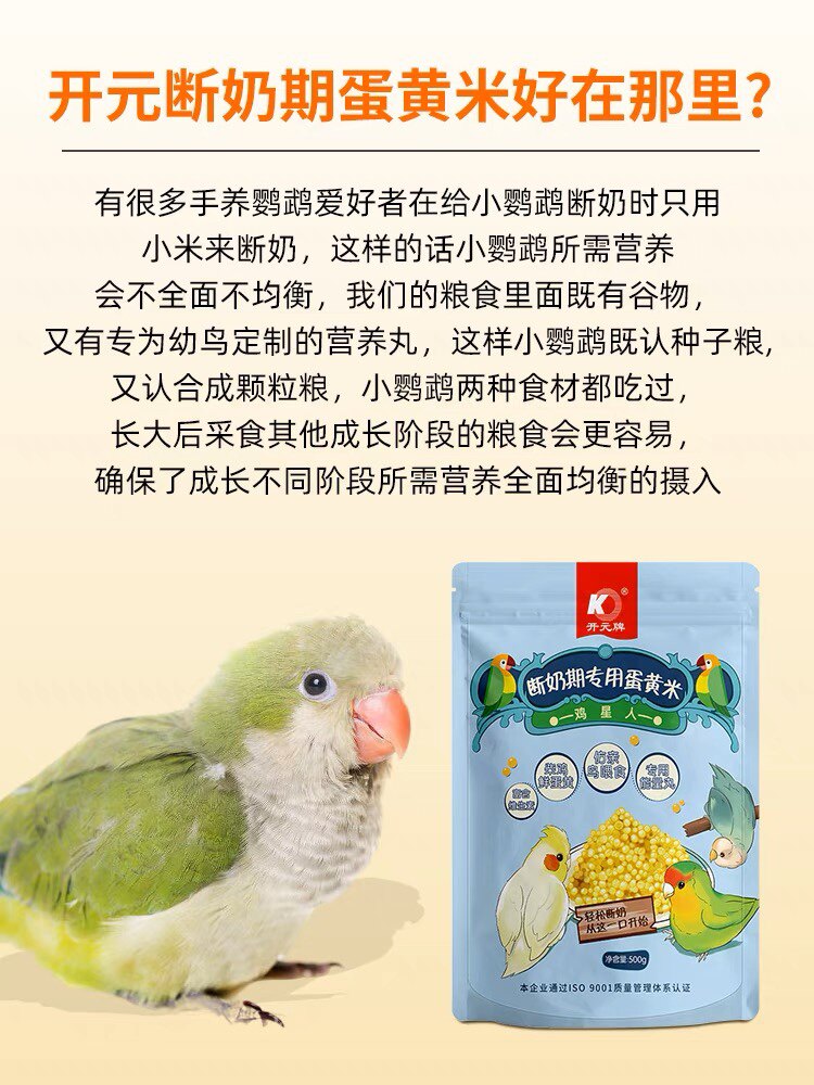 开元蛋小米鹦鹉断奶粉专用幼仔粮无壳谷子鸡蛋雏鸟食饲料含滋养丸 - 萌宠手养牡丹鹦鹉