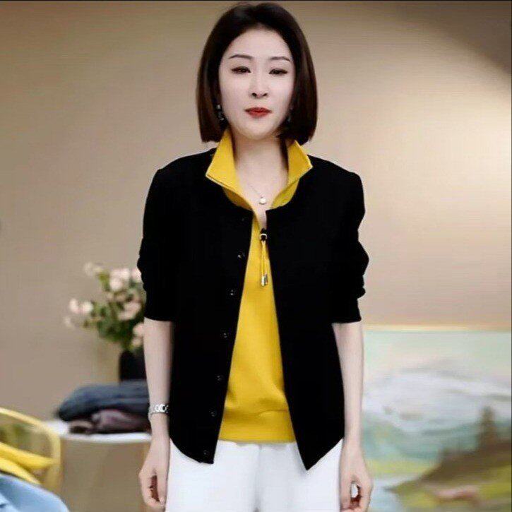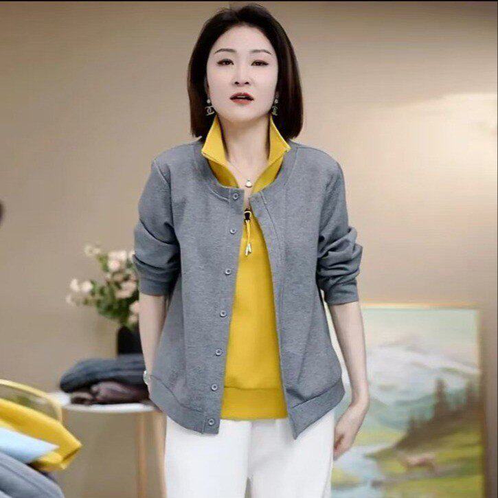 原版2026年秋季假两件半拉链立领拼接长袖气质中年妈妈装卫衣女 - FAA高品