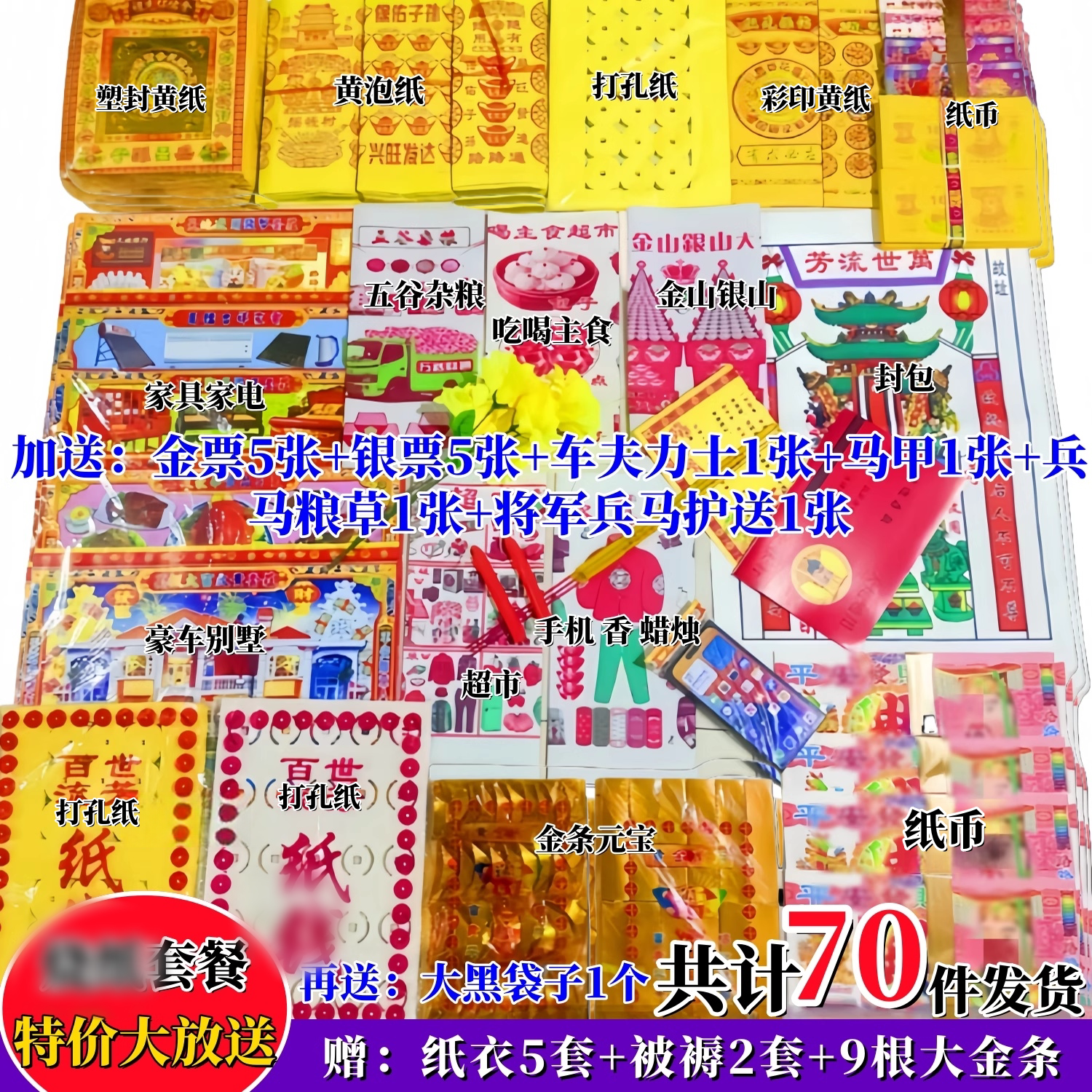 清明节套餐黄纸大全套寒衣节春节中元烧头七五七周年百天节气通用 - 万福堂祭祀用品批发