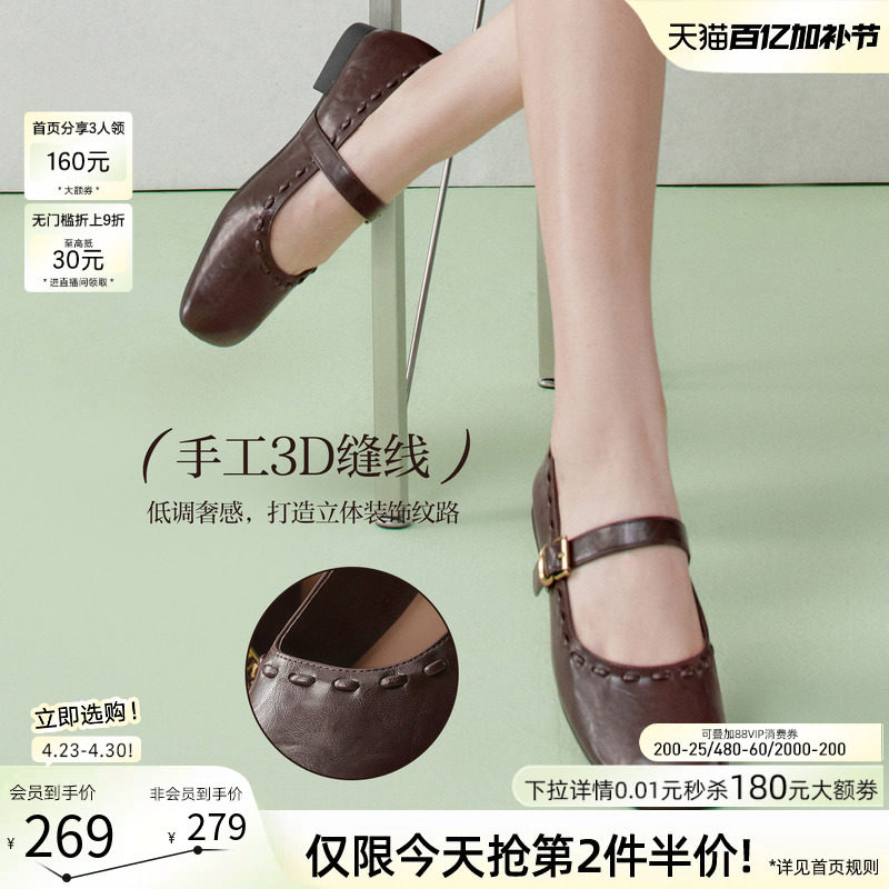 【张小婉同款】百思图26夏新款芭蕾玛丽珍鞋小皮鞋女单鞋F0111AQ6 - 百思图官方旗舰店