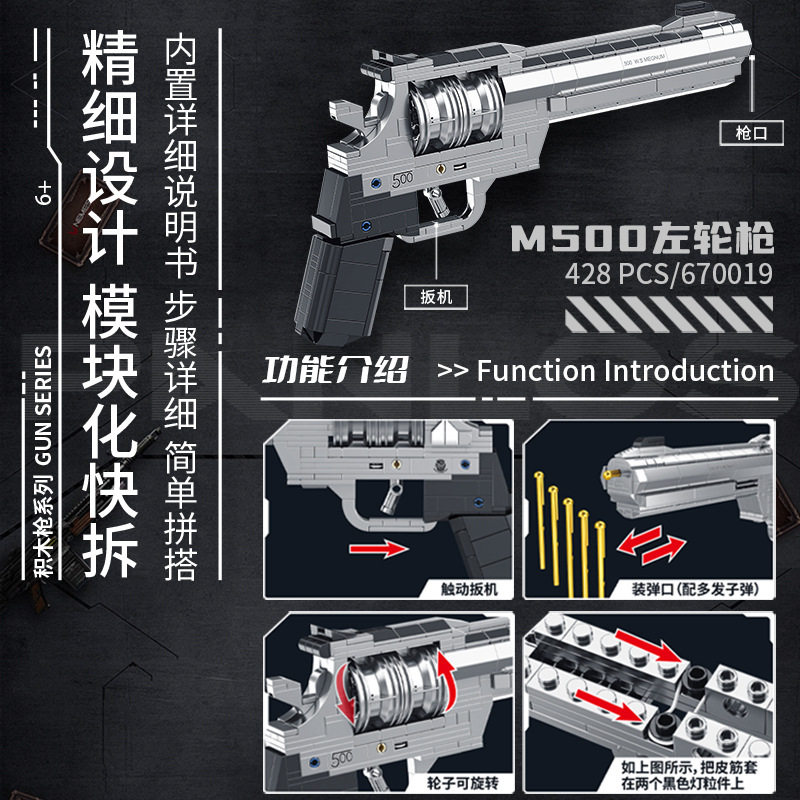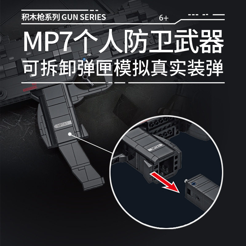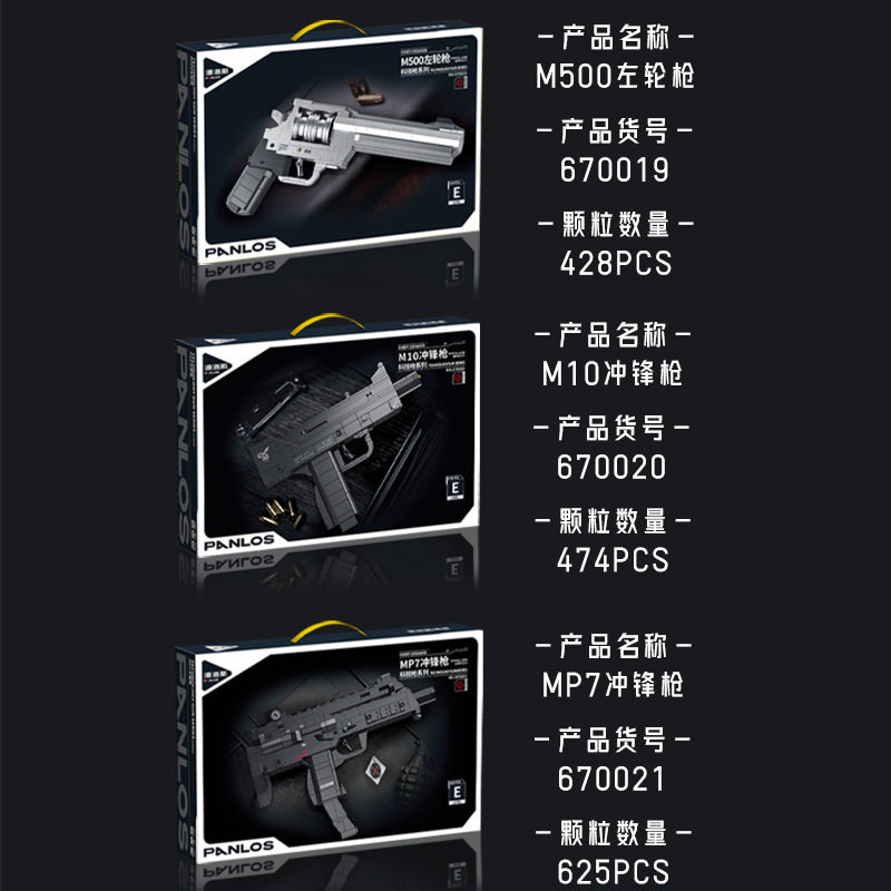 潘洛斯积木枪670019积木左轮手枪MP7M10冲锋枪男孩玩具枪礼物赠品 - 伴乐积木