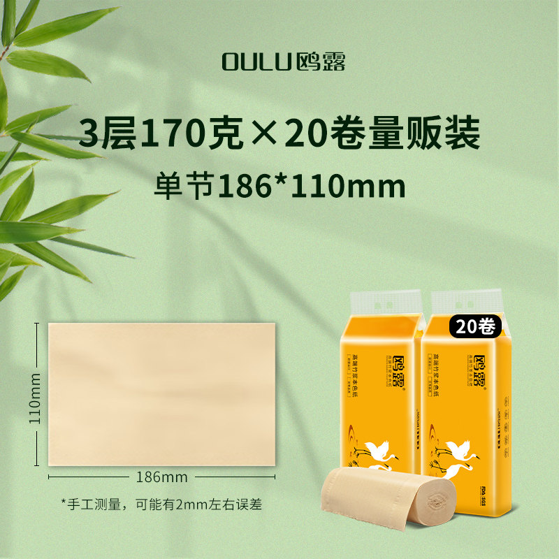 鸥露竹浆纸本色大规格无芯卷纸家用整箱卫生纸欧露厕纸170g20卷 - 鸥露旗舰店