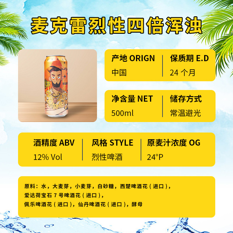 正品麦克雷烈性啤酒四倍浑浊IPA高度原浆精酿啤酒500ml大罐装 - 醉爱精酿馆