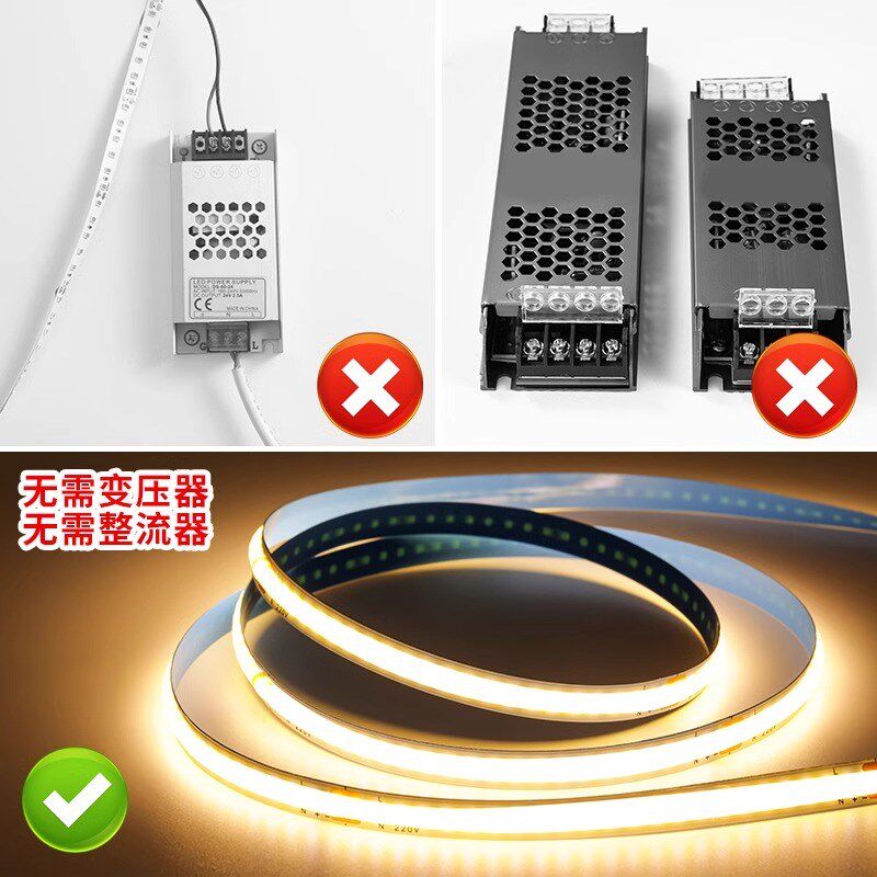 单色220V高压COB灯带免驱动家装工程线性灯自粘低压高亮LED软灯条 - 婺源古村落