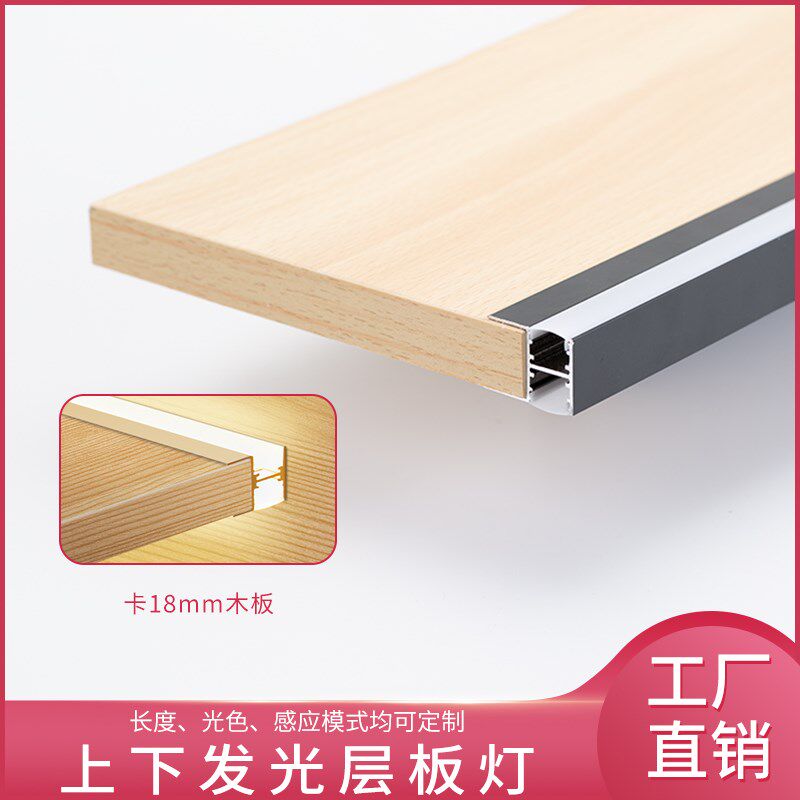 led层板灯上下双面发光隔板灯卡槽酒柜夹板18mm书柜衣柜感应灯带 - 天河超市铺