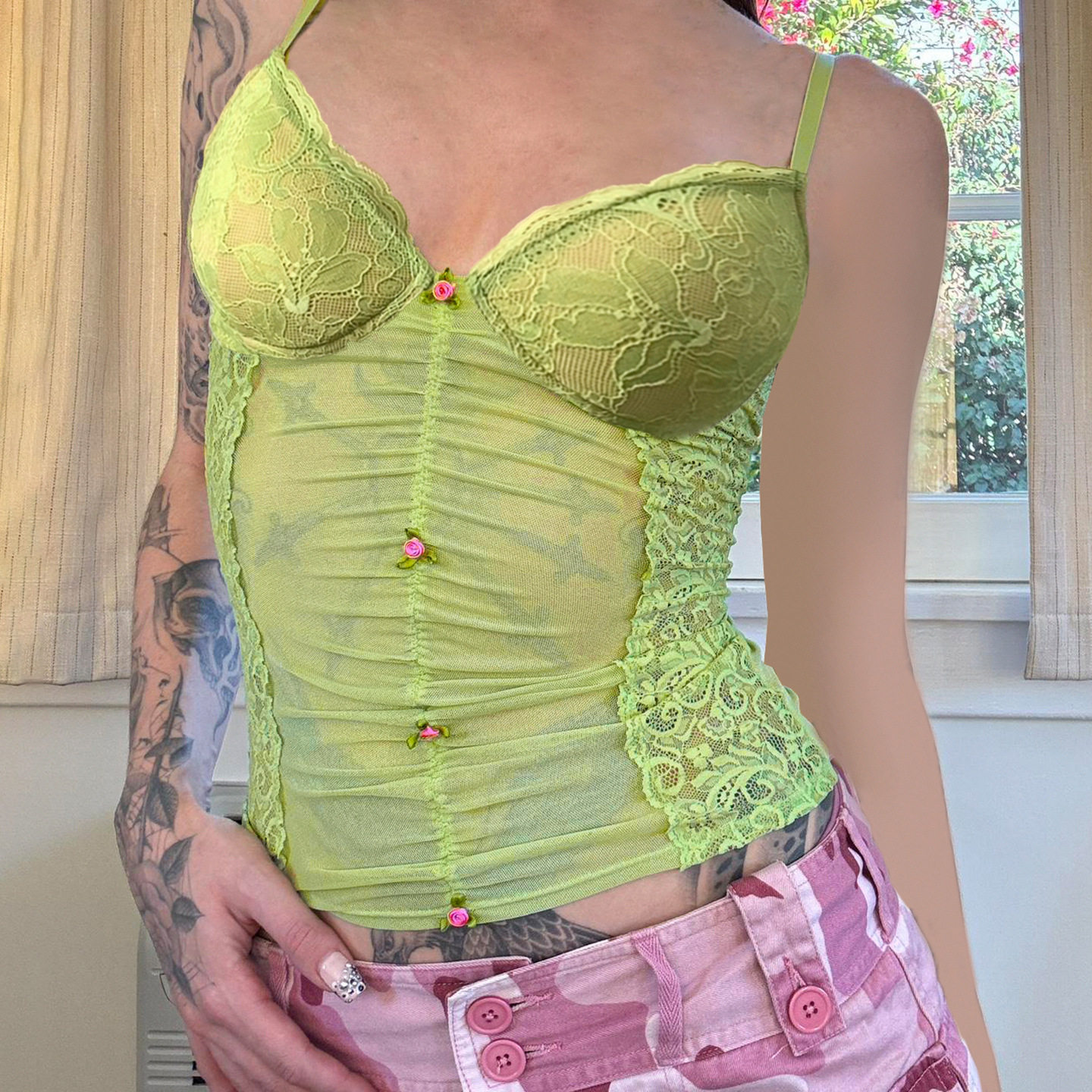 Mesh see through camisole vest 性感蕾丝拼接网纱透视吊带背心 - Sexy women's outf