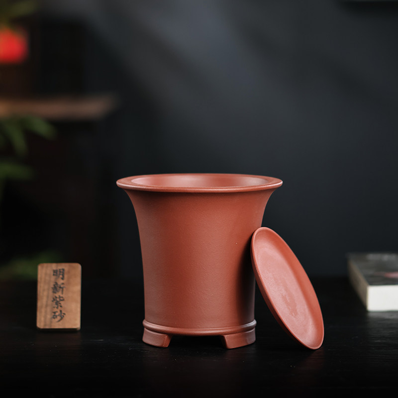 精品紫砂素面束腰兰花盆带托春兰剑兰君之兰室内绿植桌面特价包邮 - 明新紫砂
