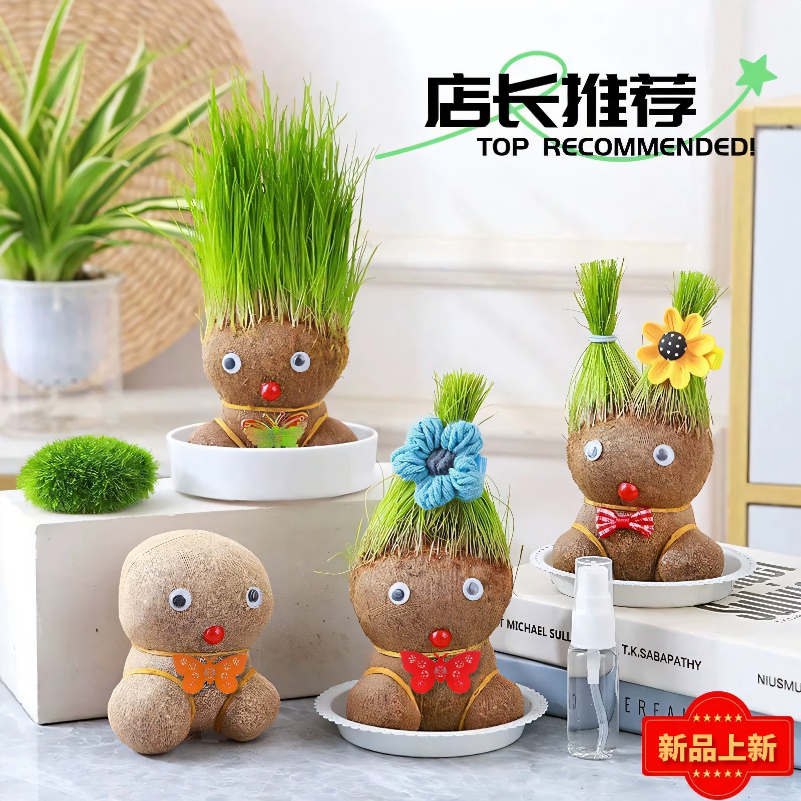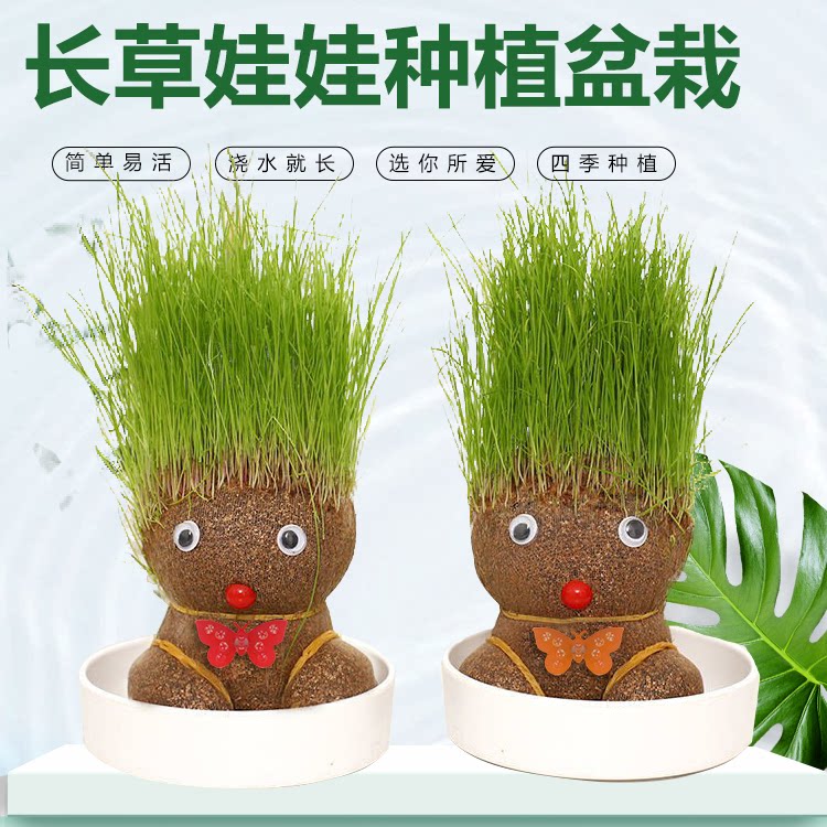 diy创意草头娃娃开花绿植桌面儿童水培长草植物幼儿园盆栽小摆件 - 萌兮花语