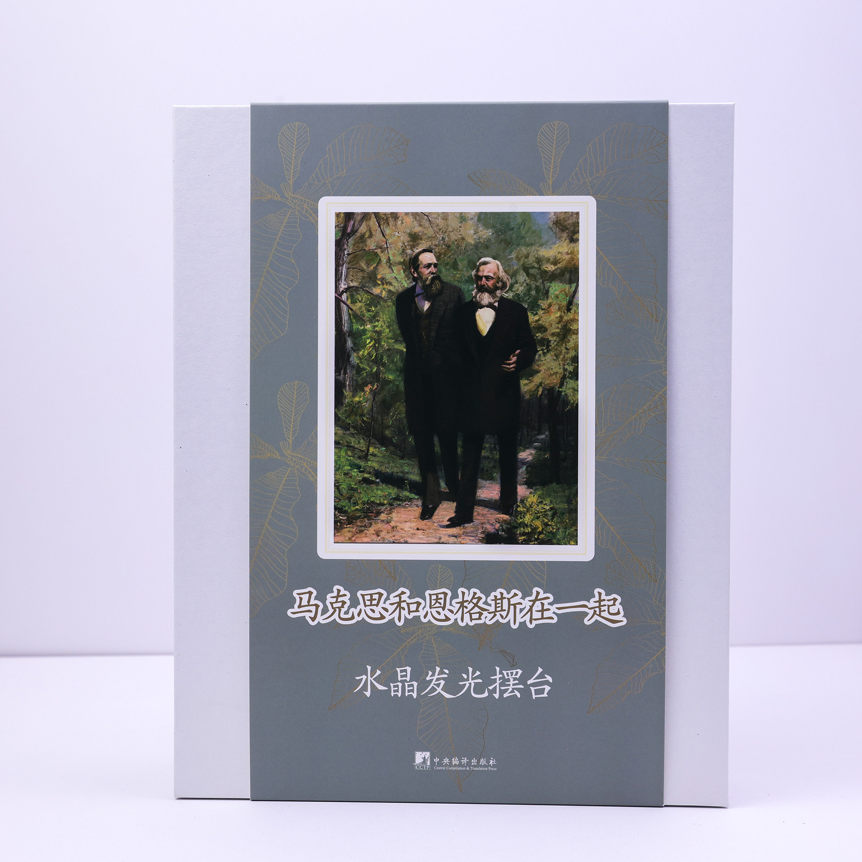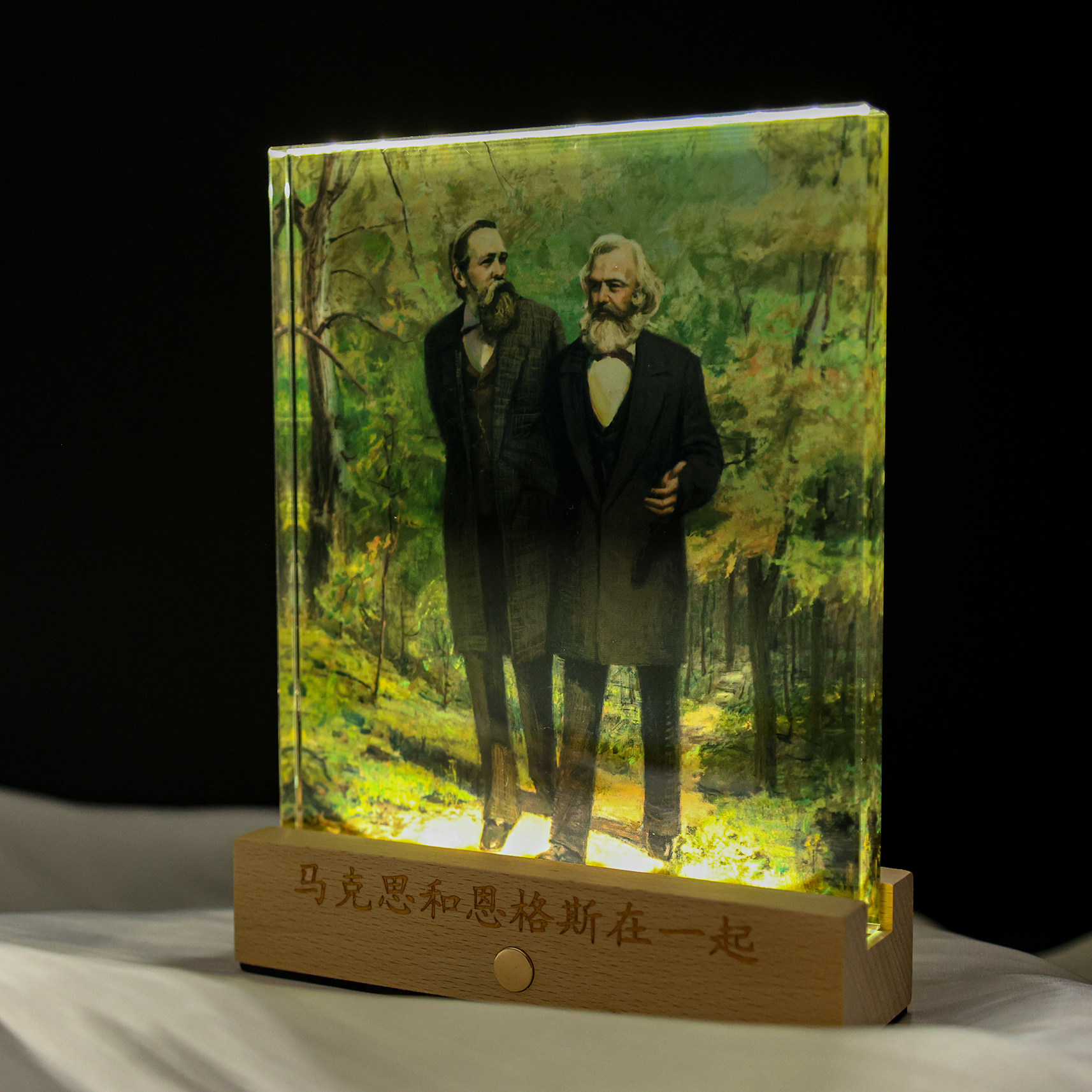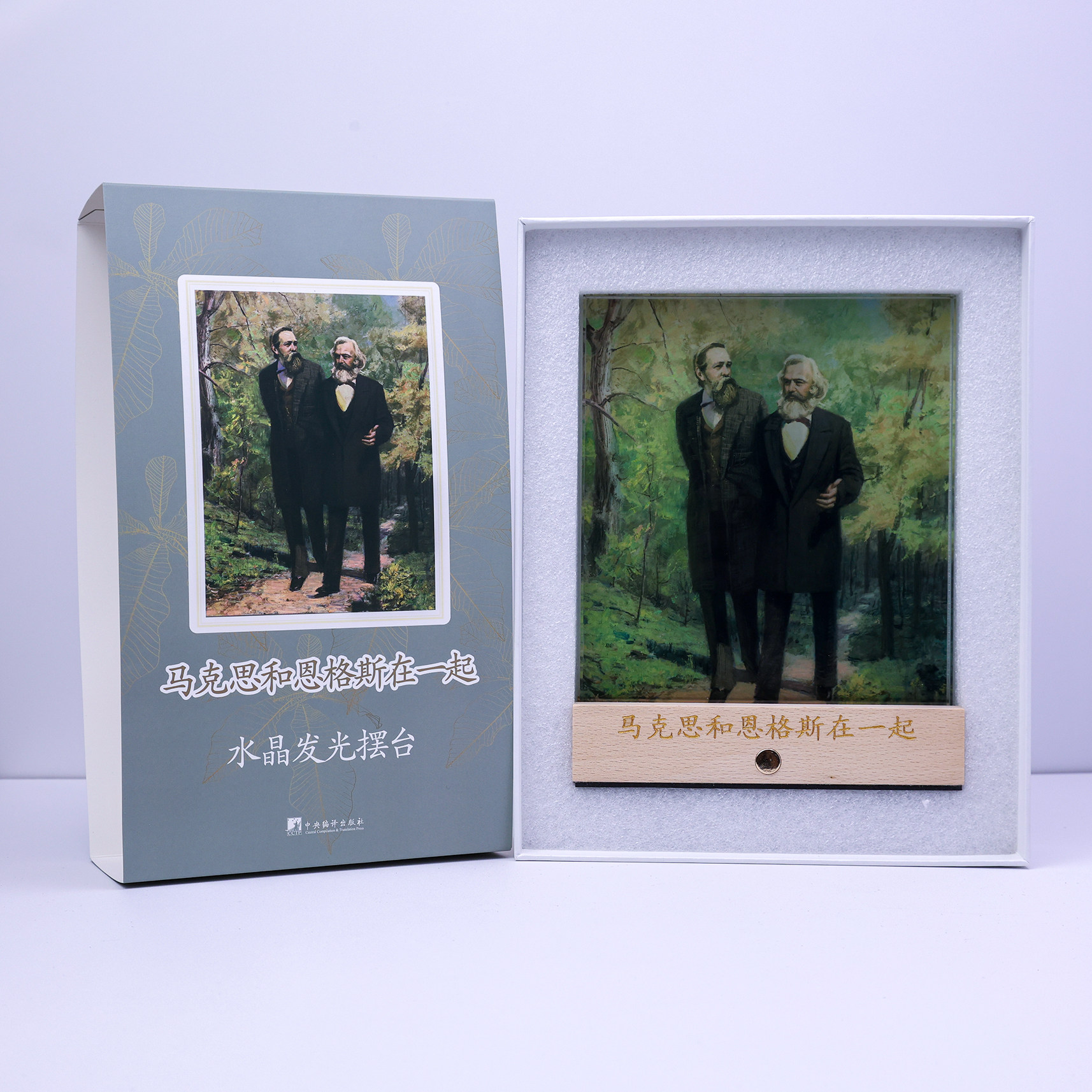 马克思和恩格斯在一起水晶发光摆台 经典画作 水晶高透 精美摆台 木制底座 [编译文创] - 中央编译出版社旗舰店