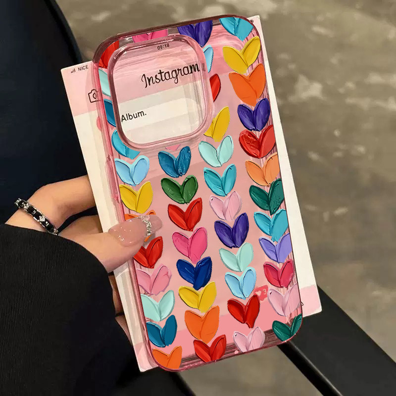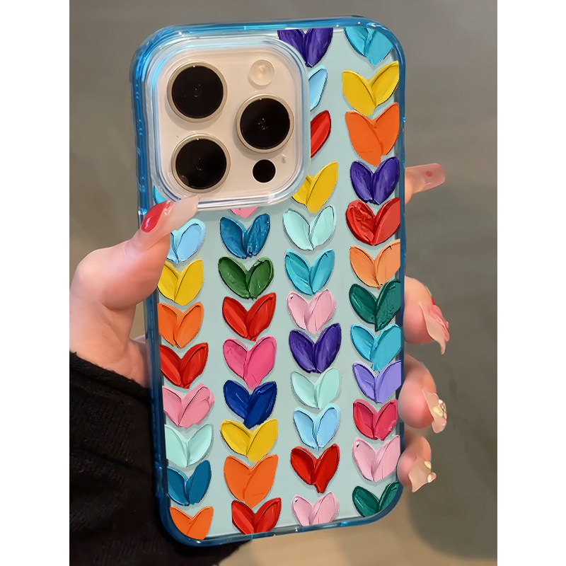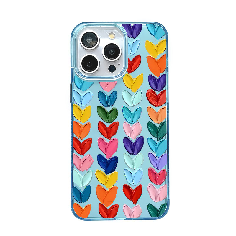 油画爱心拼接适用苹果16promax手机壳iphone14pro新款13小众12设计感11保护套15promax全包防摔15plus冰透蓝 - 啵啵啵工作室