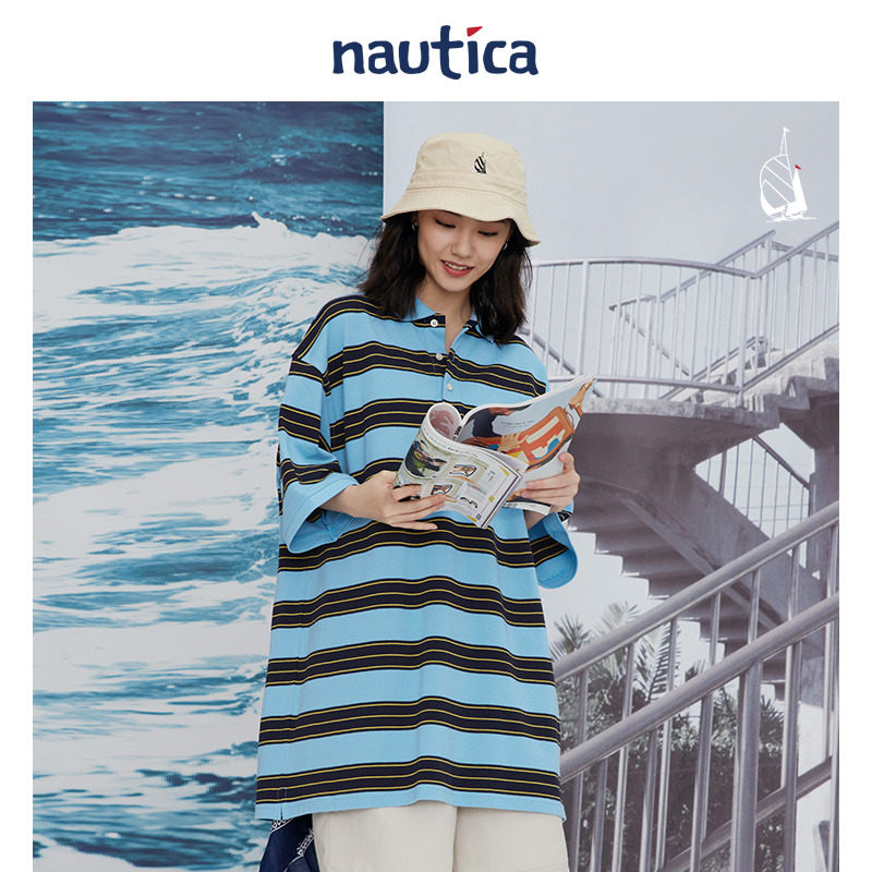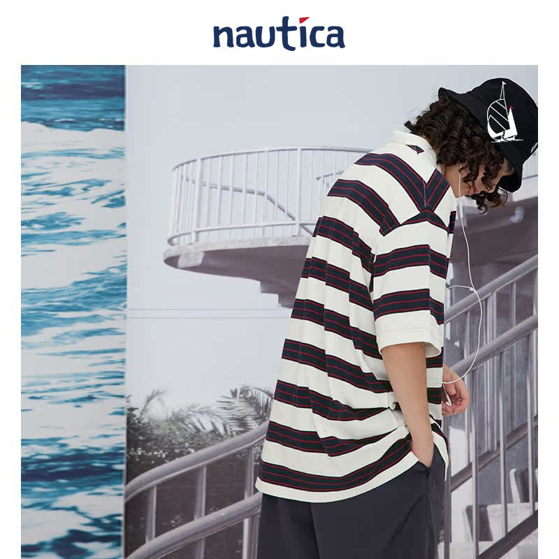 【官方正品】nautica whitesail日系无性别条纹撞色短袖POLO衫 - nautica white sail旗舰店