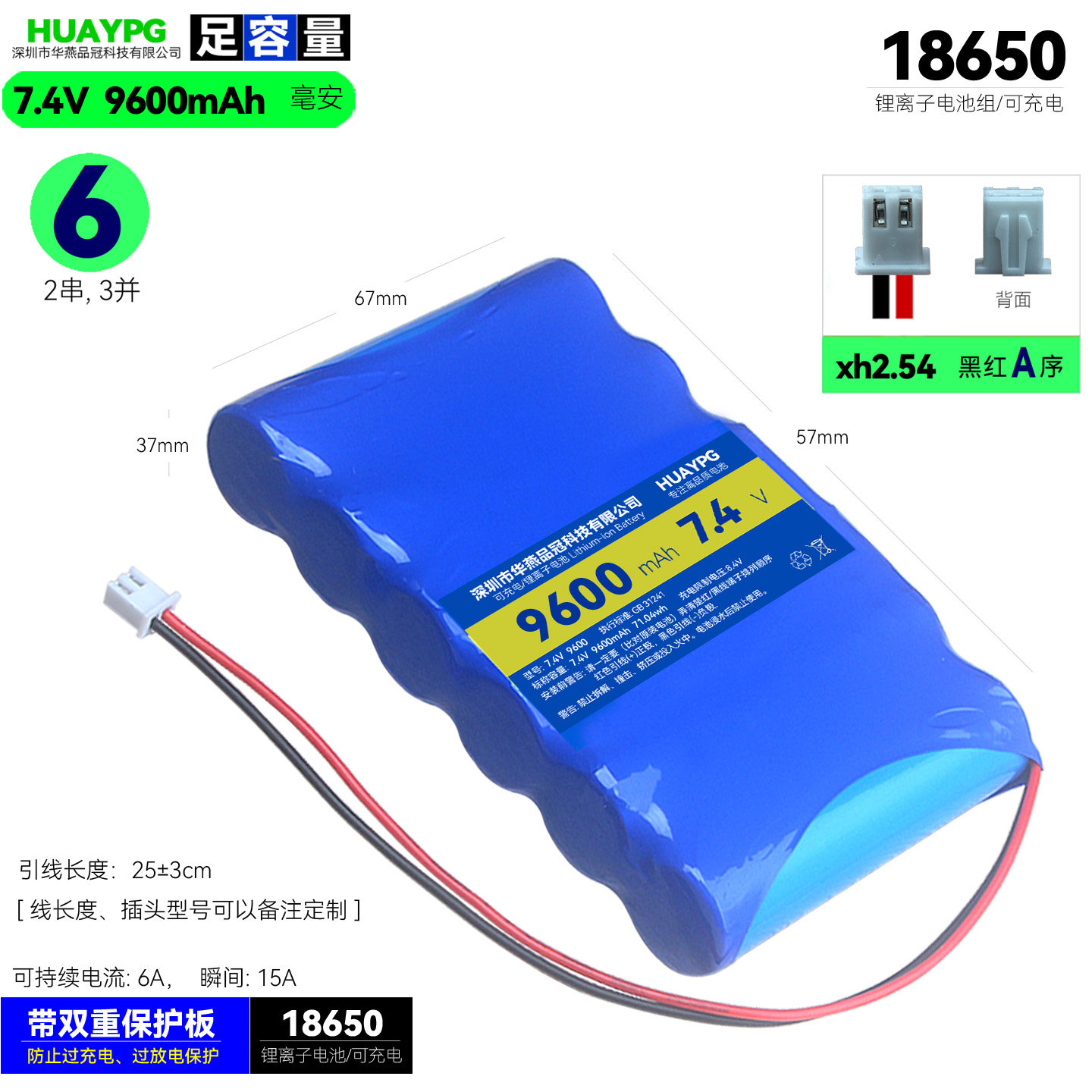 9V户外蓝牙音响LED灯具7.4V带保护板6节大容量18650可充电锂电池 - 华燕品冠