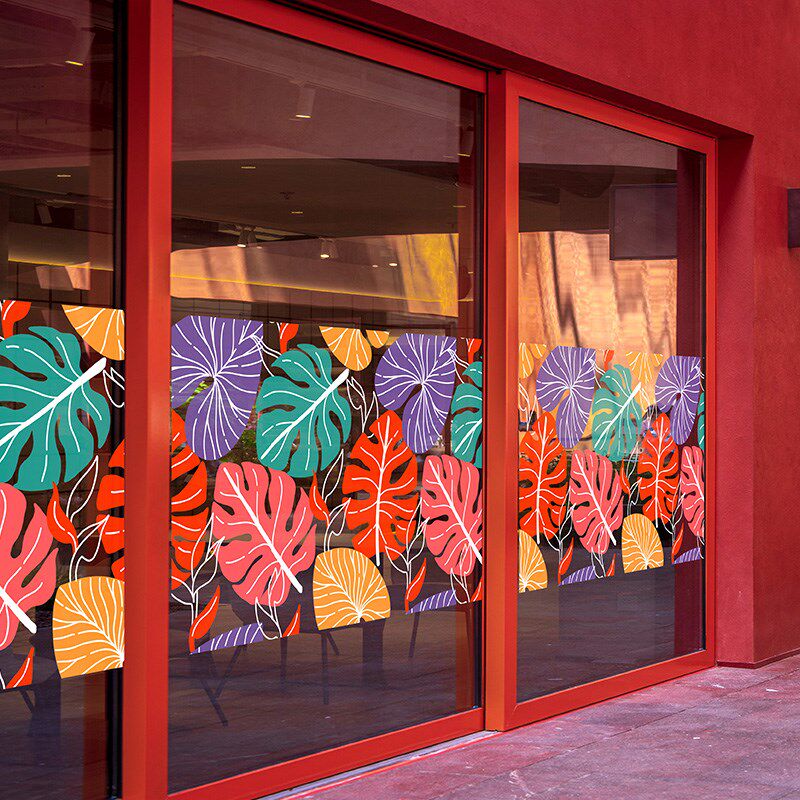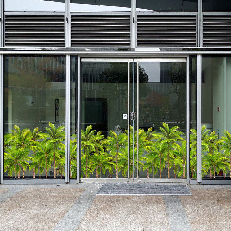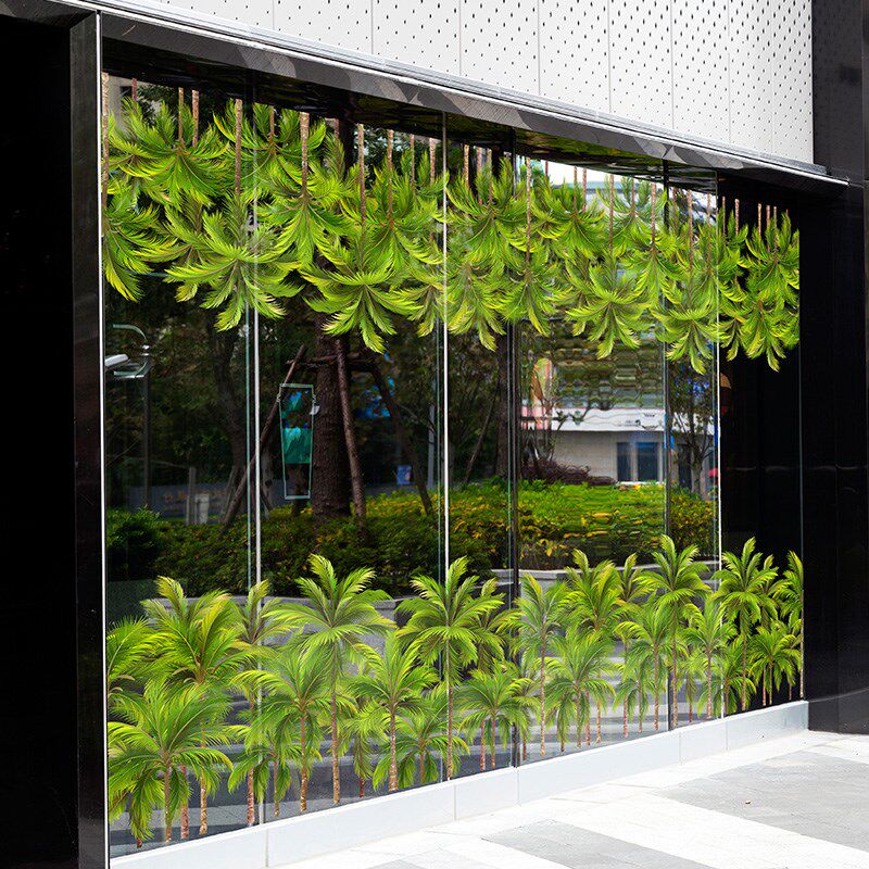 椰树林橱窗底纹绿植会议办公室装饰落地玻璃夏日风情游客中心布置 - 花影苑商城的小店94