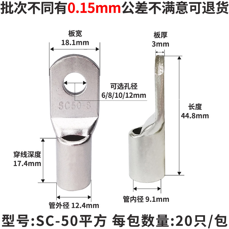 SC50-6/8/10/12平方窥口铜鼻子 铜接线端子 铜线耳 国标A级厚款 - 效颦坊商城的小店8