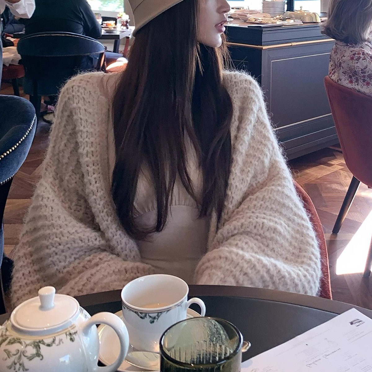 托斯卡纳的秋_温暖羊驼绵羊毛重磅手钩感粗针大开衫廓形外套秋季 - 糖糖雾眠 Sugar Mist