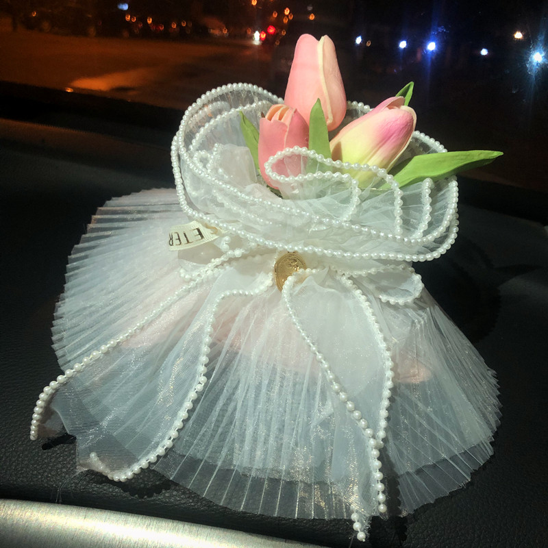 车载香薰摆件汽车用竹炭包郁金香花束香袋可发光车内中控台装饰品 - 轩商枕城流的小店67