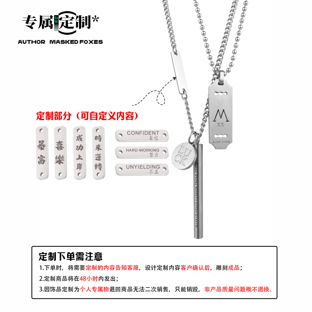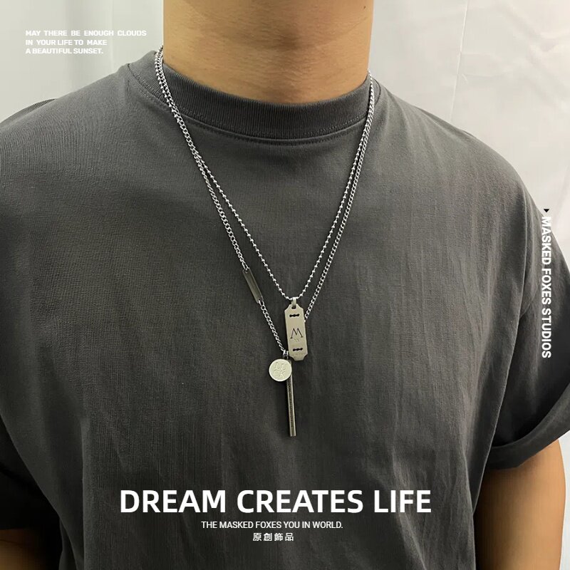 【定制刻字】原创小众叠戴项链ins冷淡风个性钛钢长款链情侣礼物 - MASKED FOXES