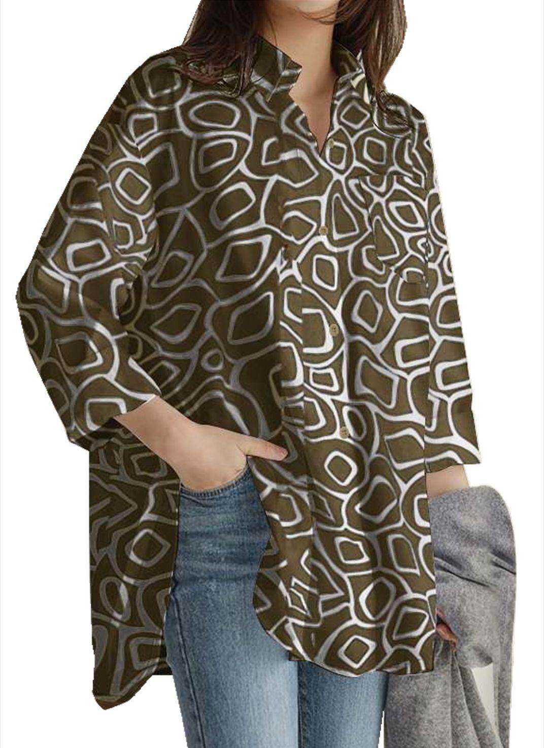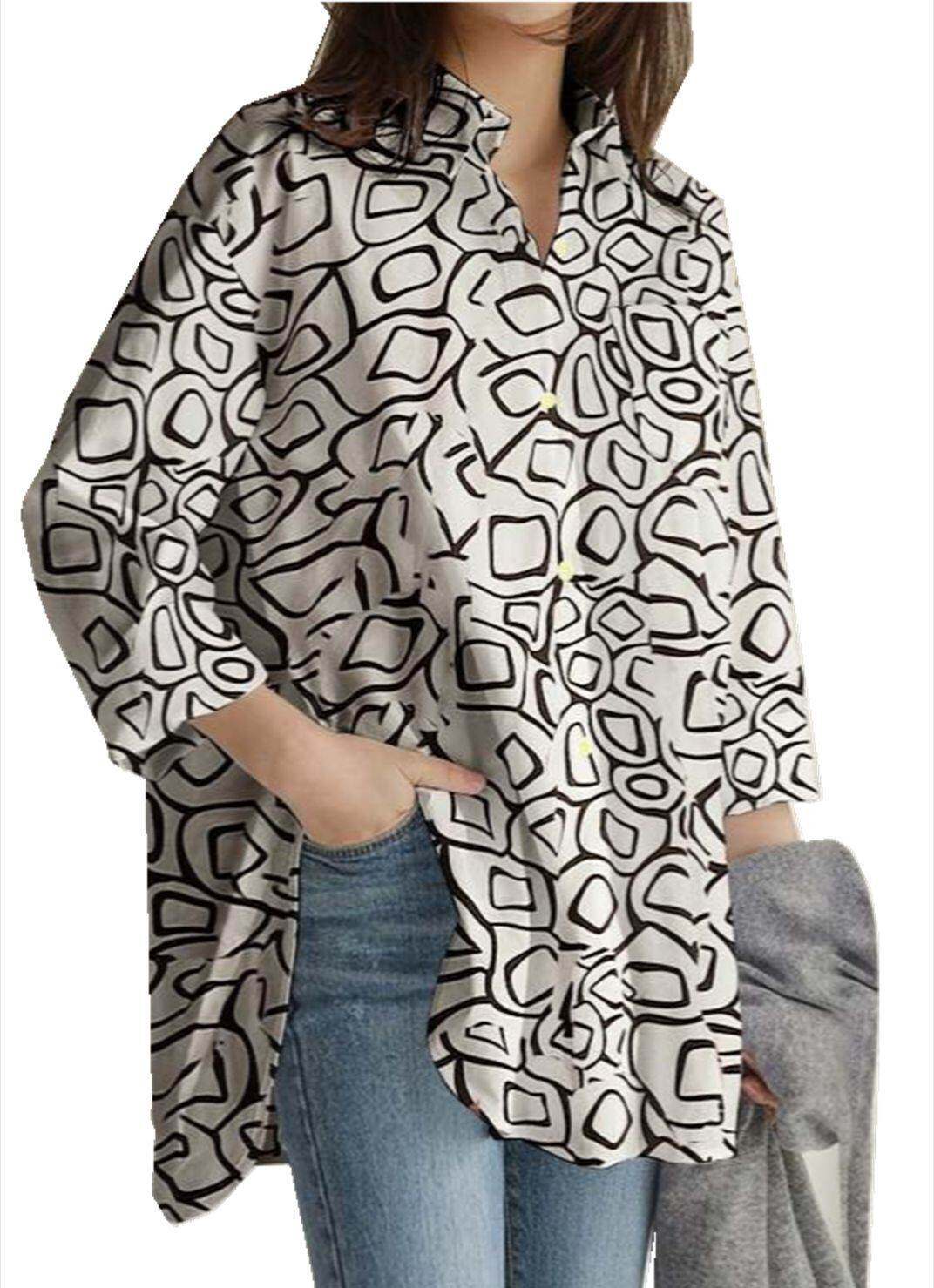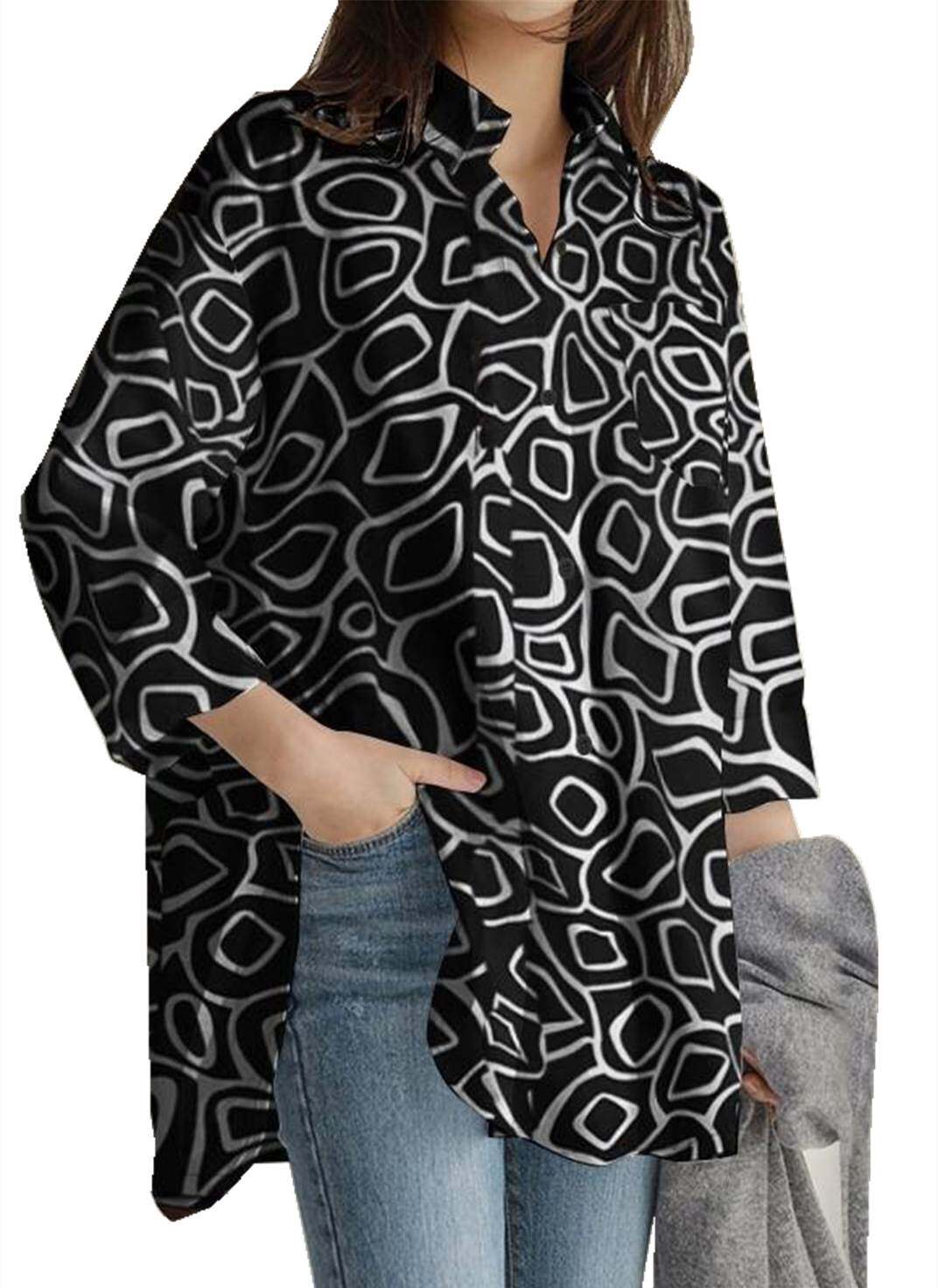Women's long sleeve tunic top casual loose lapel top T-s - tb058124764119