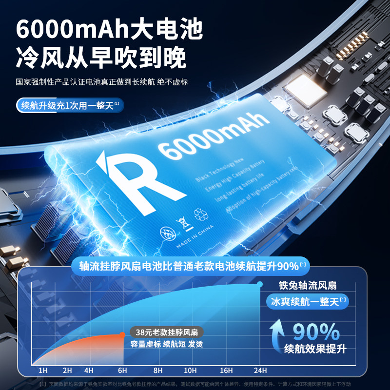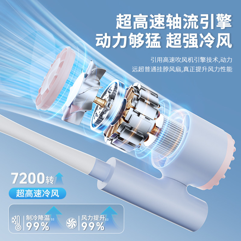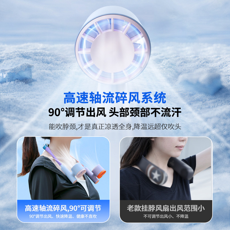 【万向出风+超长续航】铁兔挂脖风扇小型USB充电夏天降温神器办公室桌面宿舍床上厨房户外折叠随身大风力青盾 - 铁兔旗舰店