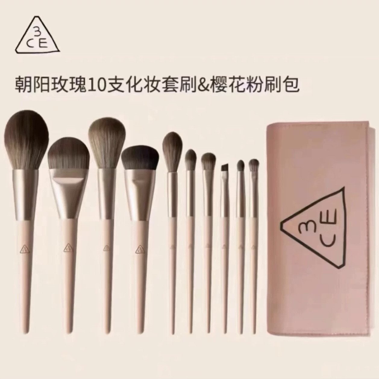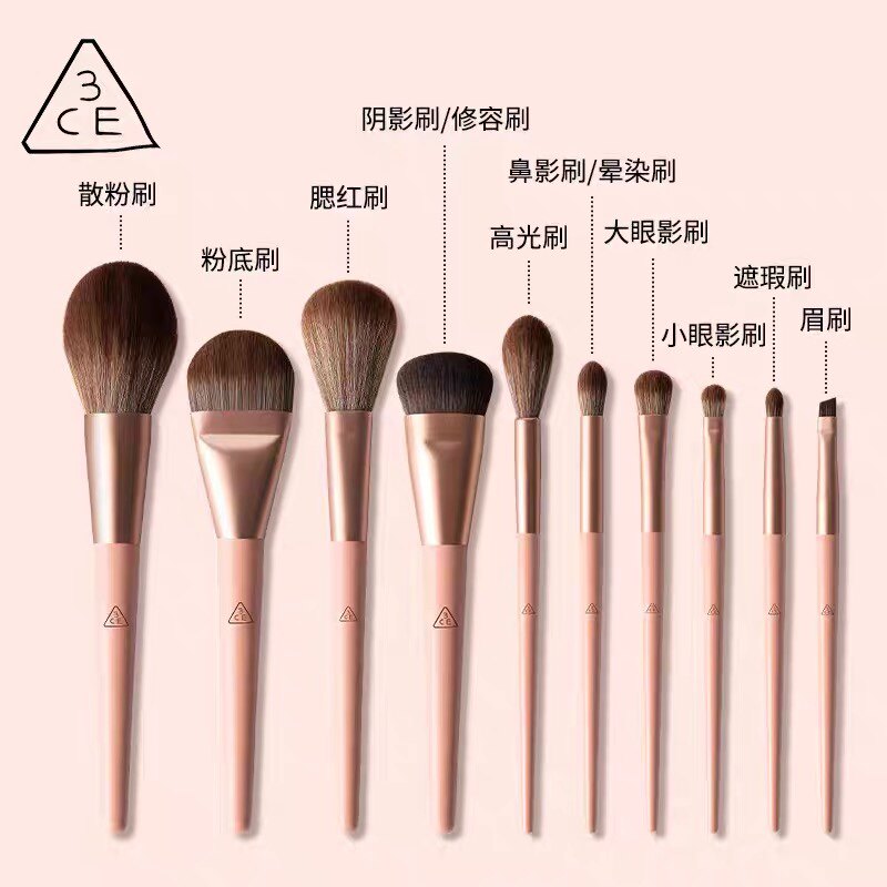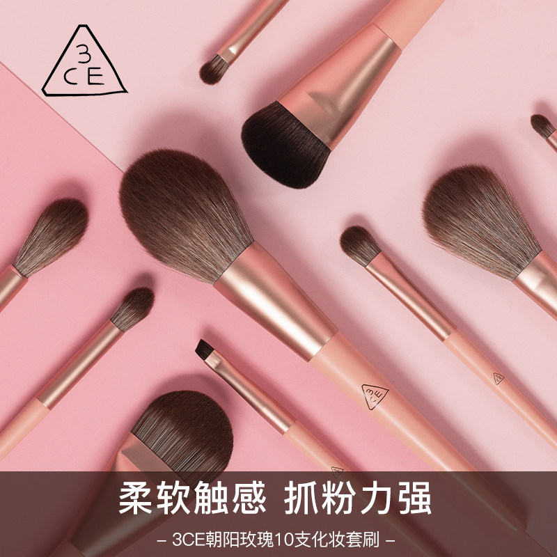 官方3CE朝阳玫瑰化妆刷10支套装 散粉刷粉底刷眼影刷美妆工具套刷 - 韩国品牌美妆店