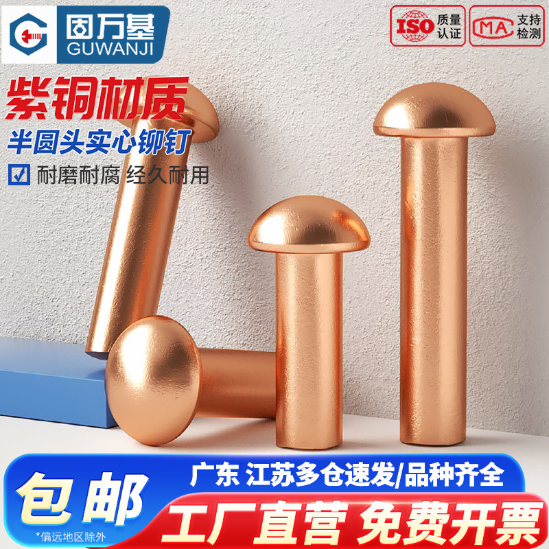 半圆头紫铜铆钉铜钉敲击式实心卯钉铝柳钉GB867M1.5M2M3M4M5M6M8 - 固万基官方旗舰店