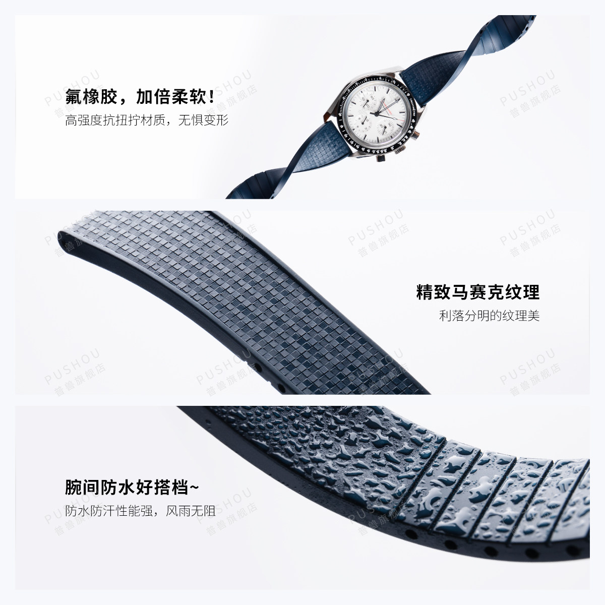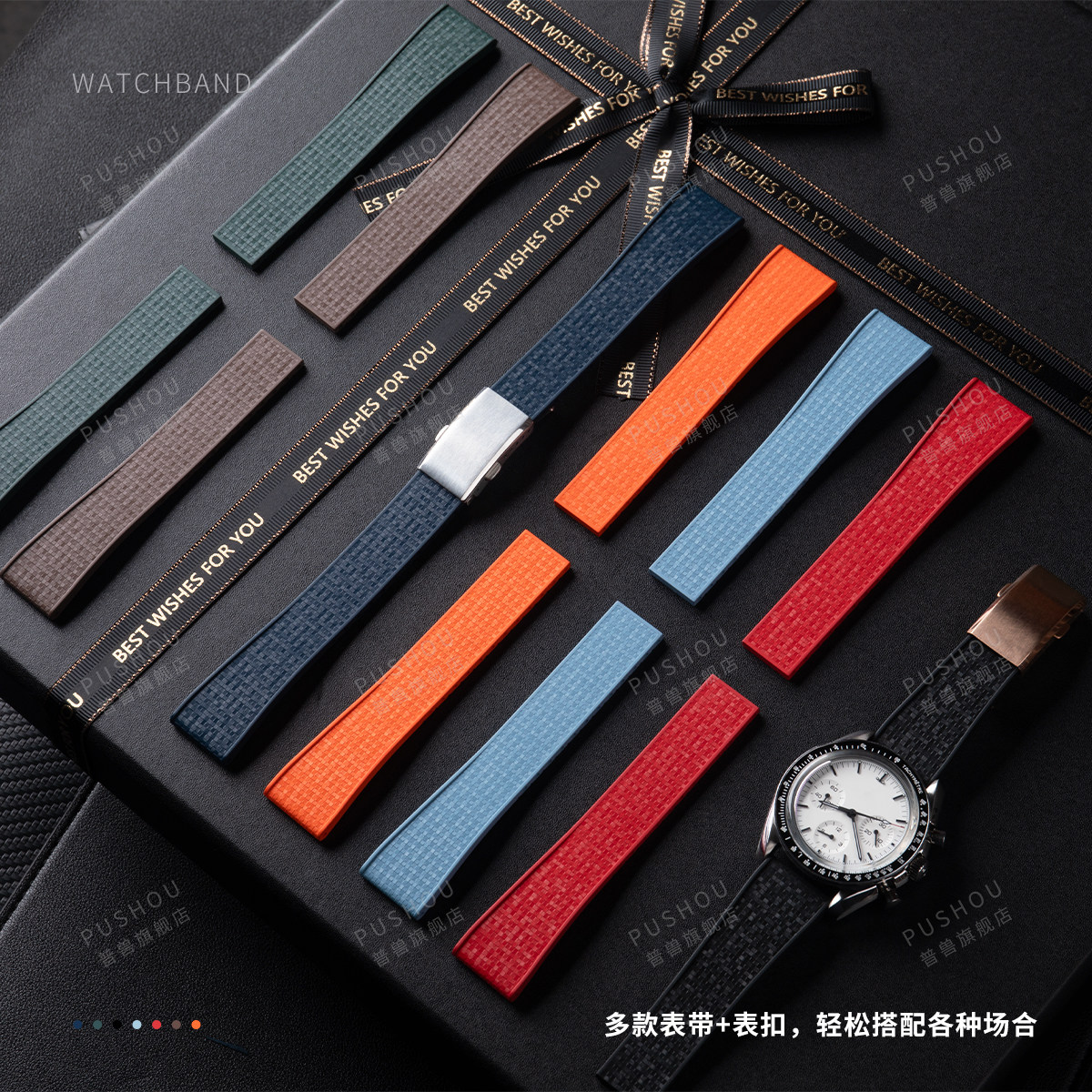通用快拆氟橡胶手表带适用美度精工浪琴万国欧米茄汉密尔顿罗西尼 - 普兽旗舰店