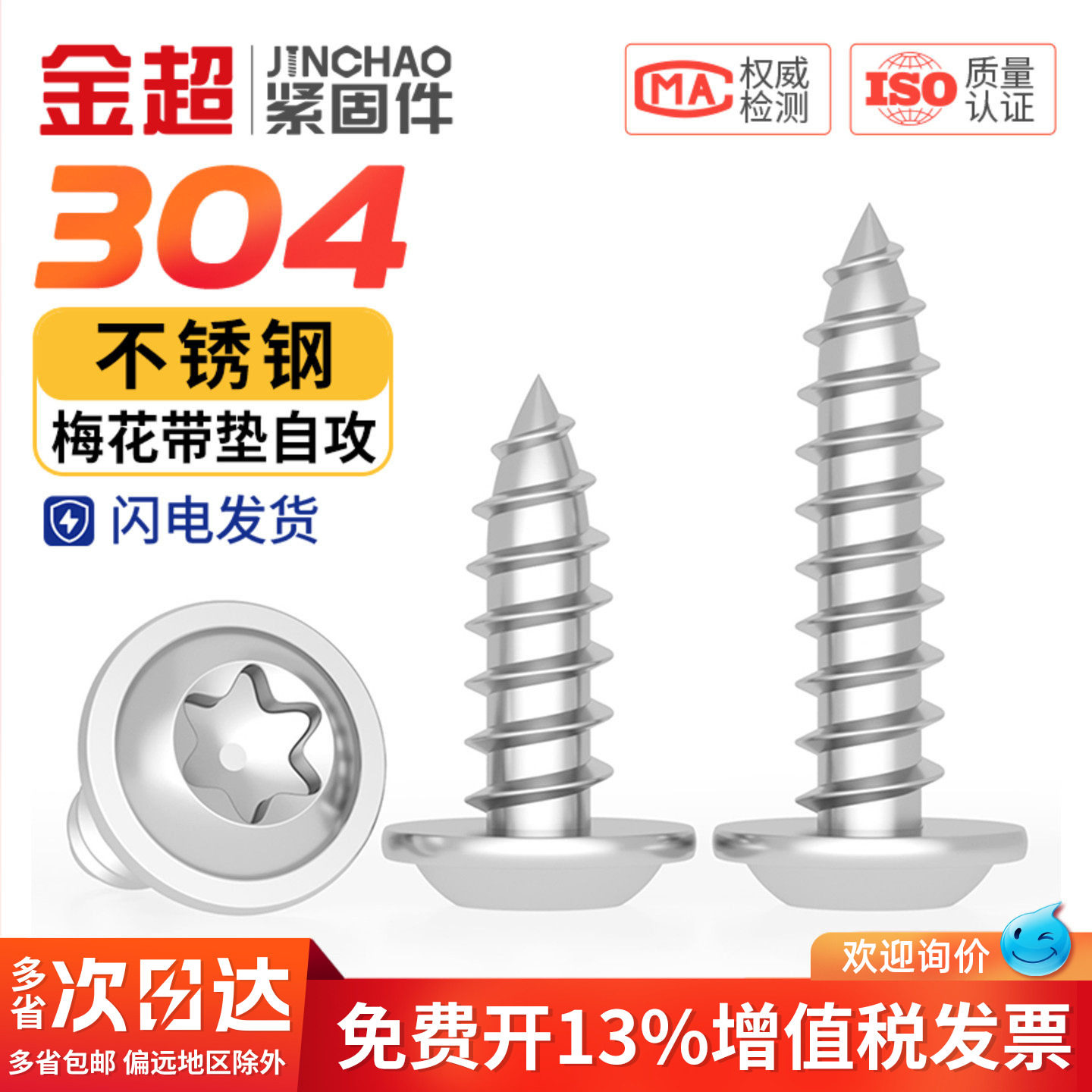 304不锈钢梅花带垫自攻螺丝防拆防盗盘头带介木牙尖头螺钉MM3M4M5 - 金超官方旗舰店