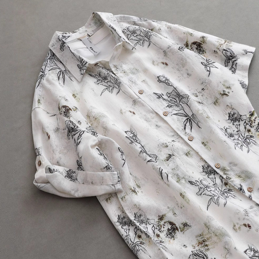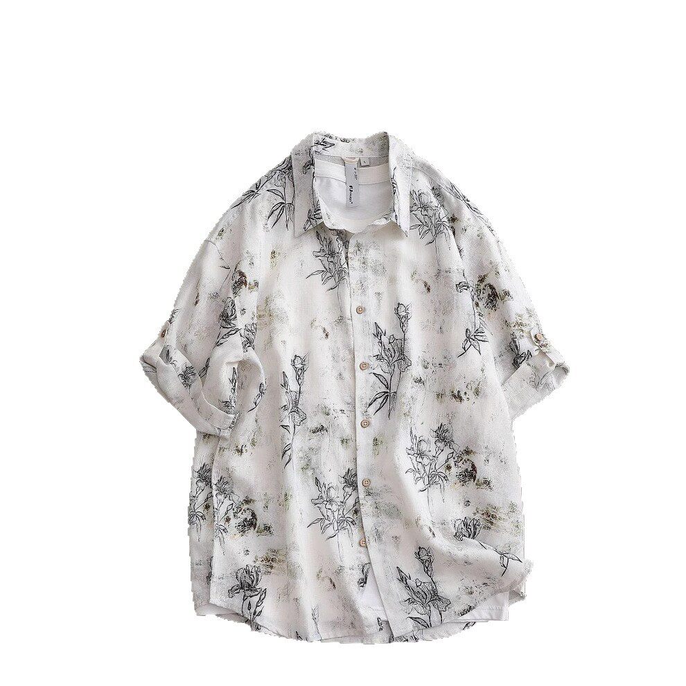 您的位置:安康生态农业开发平台  >   >  亚麻天丝印花短袖衬衫男夏季薄款透气新中式上衣文艺复古衬衣半袖