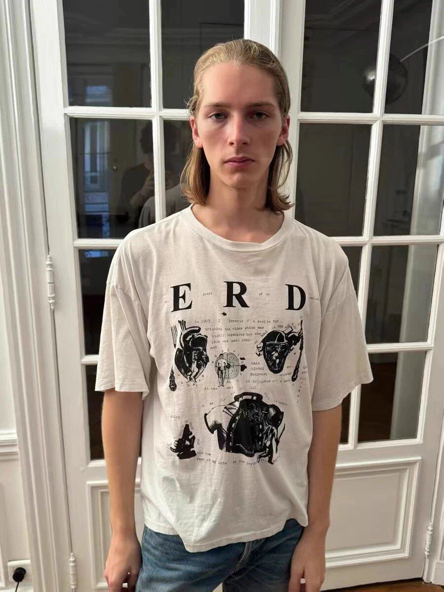 非erd25ss忧郁的富二代“战争角色”水洗印花落肩纯棉圆领短袖t恤 - 街巷club