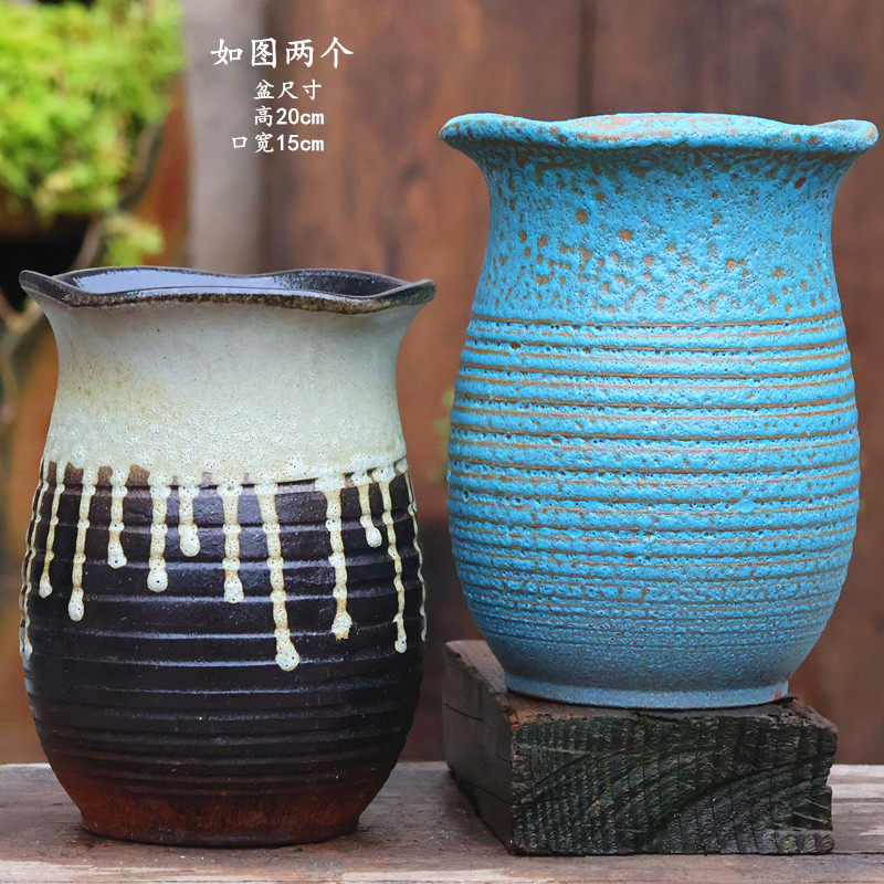 手工粗陶多肉花盆大口径高紫砂组合法师老桩陶瓷陶罐三角梅花盆 - 万盛花盆园艺