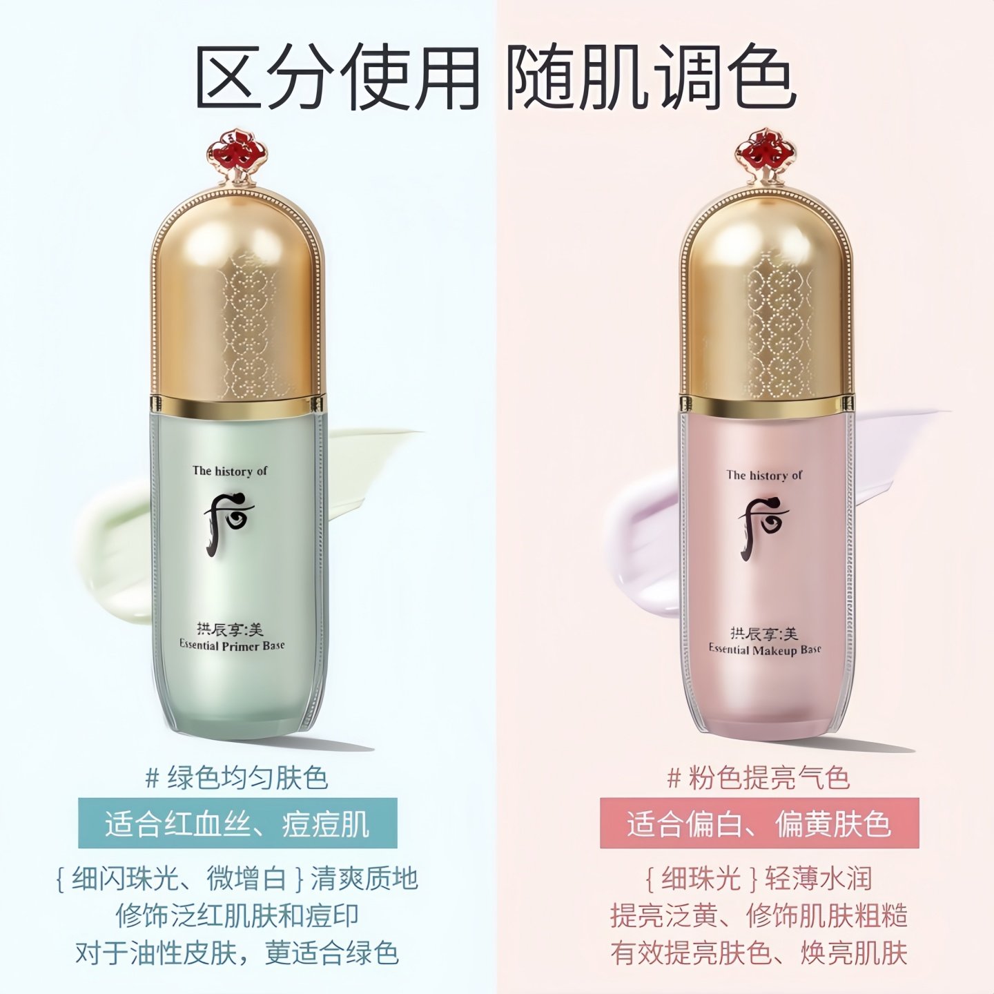 韩国WHOO后拱辰享美玉琼粉绿色精华隔离霜40ML提亮保湿妆前乳套盒 - 韩悦美妆