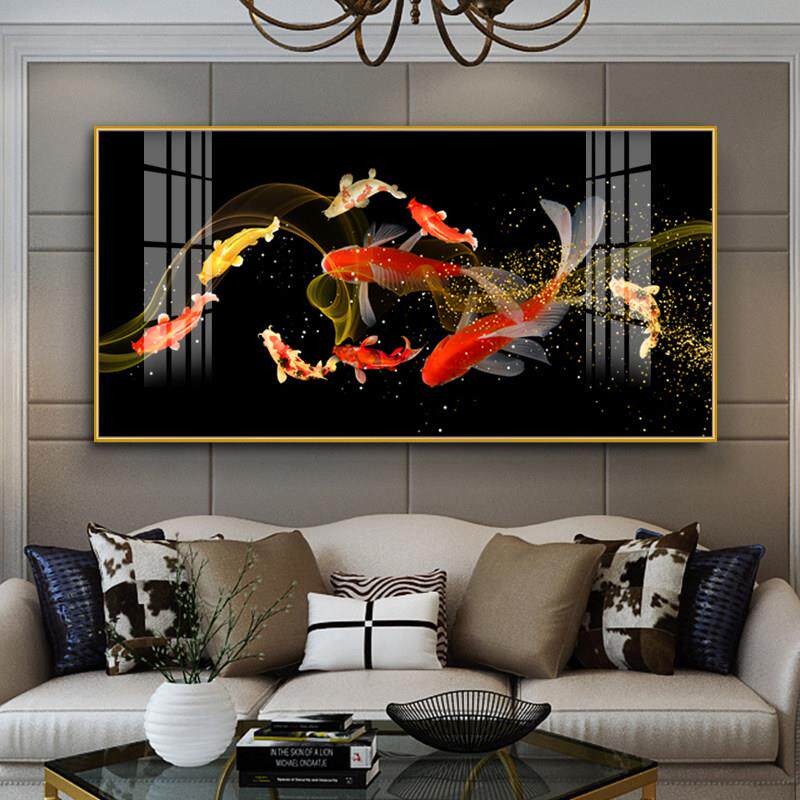 引进富贵锦鲤九鱼画双鱼座客厅装饰画沙发背景墙画入口餐厅横版现 - 希妮居生活馆3