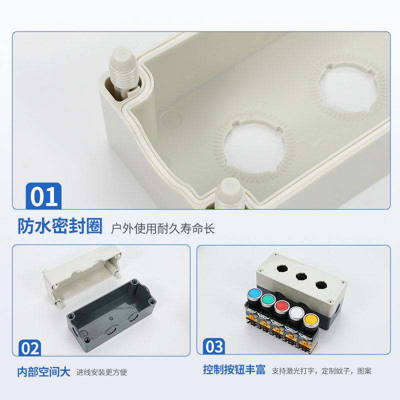 您的位置:生态农业开发平台  >  电器  >  加高按钮开关控制盒带灯按钮盒防水防尘工业按钮操作箱1234孔22mm