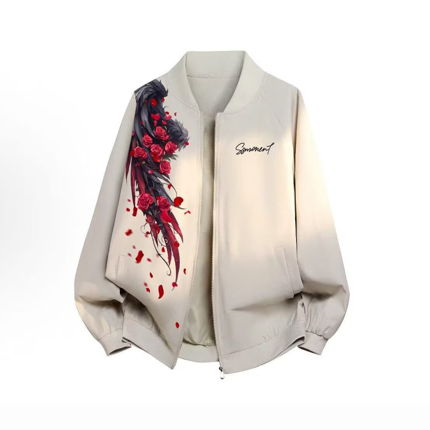 WH先生美式复古玫瑰印花棒球夹克男春秋宽松翻领外套港式潮流 - WH先生原创设计