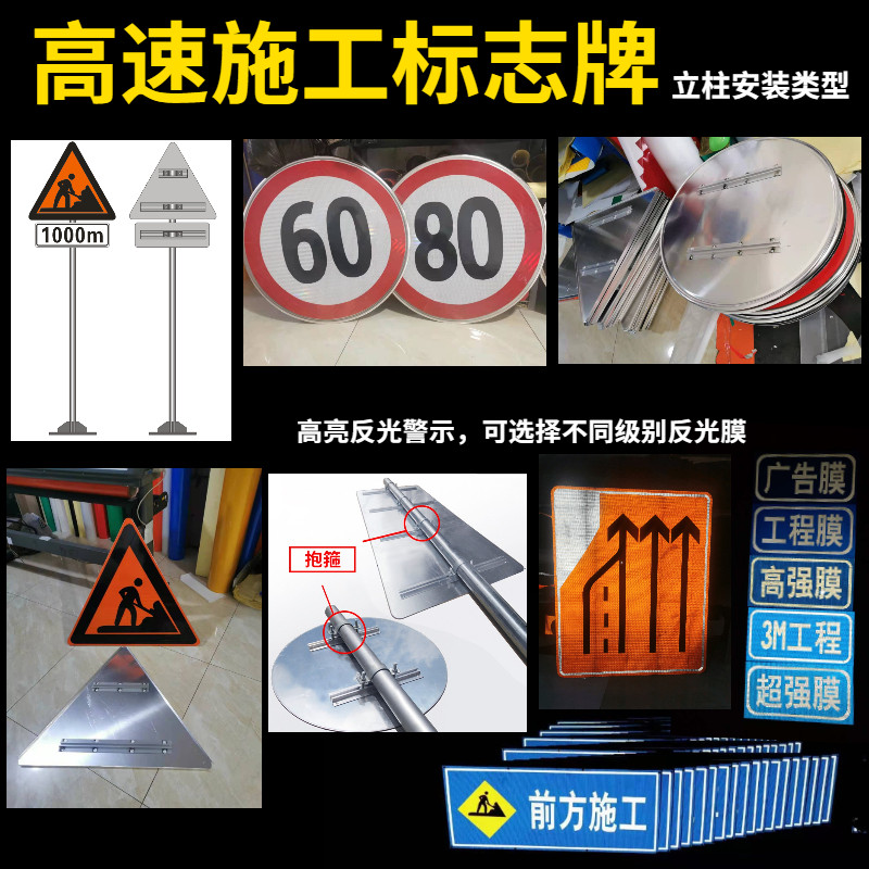 高速公路道路施工标志牌改道作业警示限速导向牌反光指示牌全国标 - 德宇交通设施