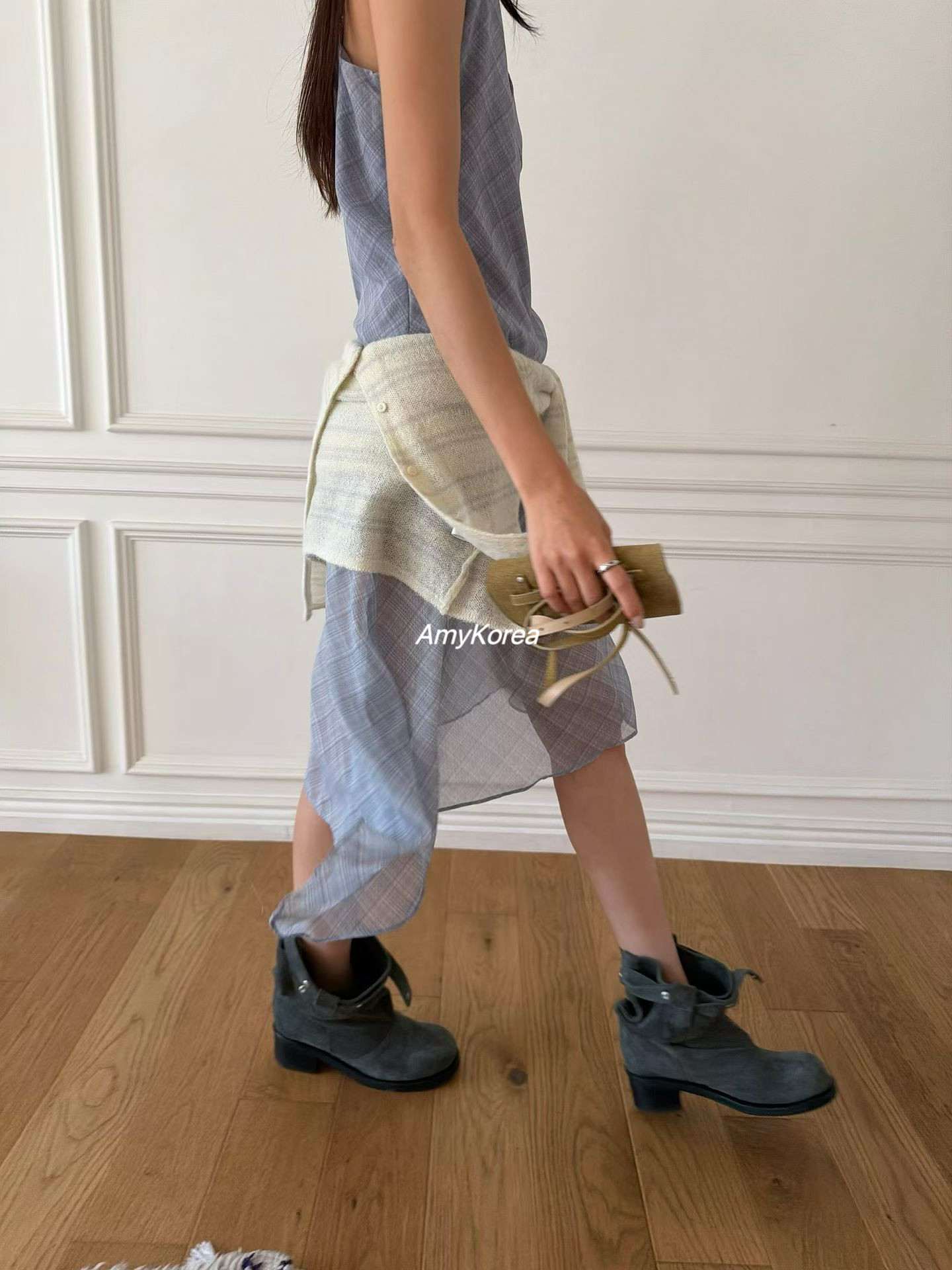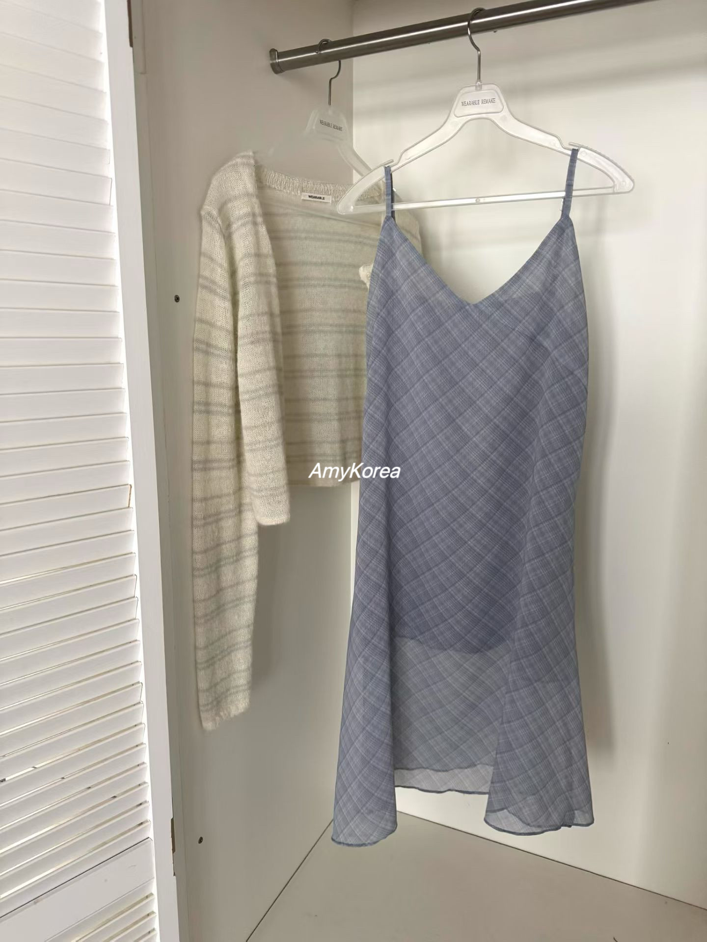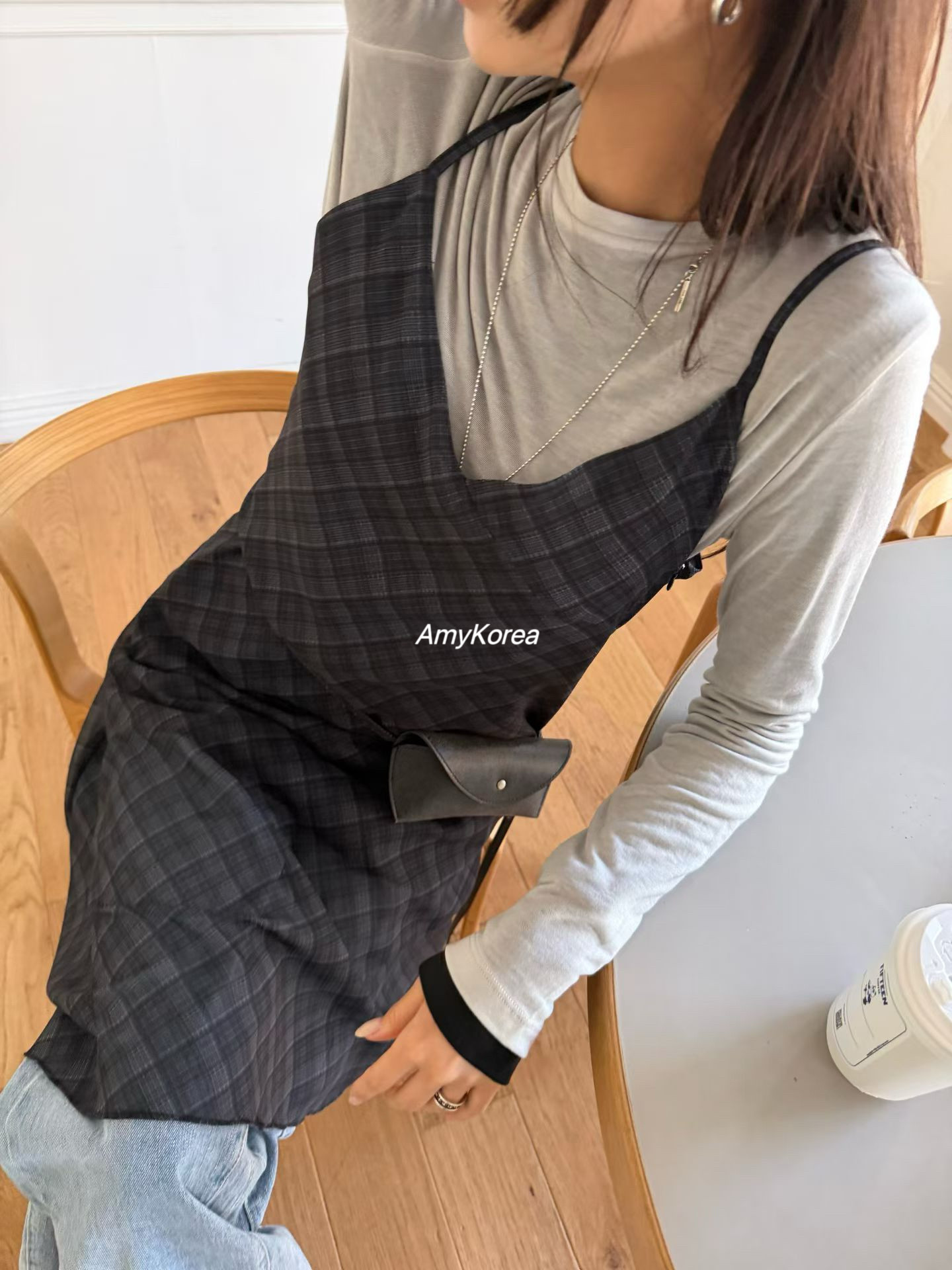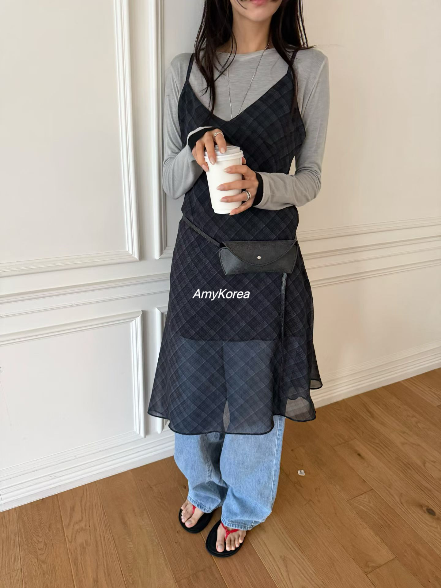 wearable Amy韩代 26早春 东大门 轻盈格子 吊带连衣裙 纯色百搭 - Amy Korea