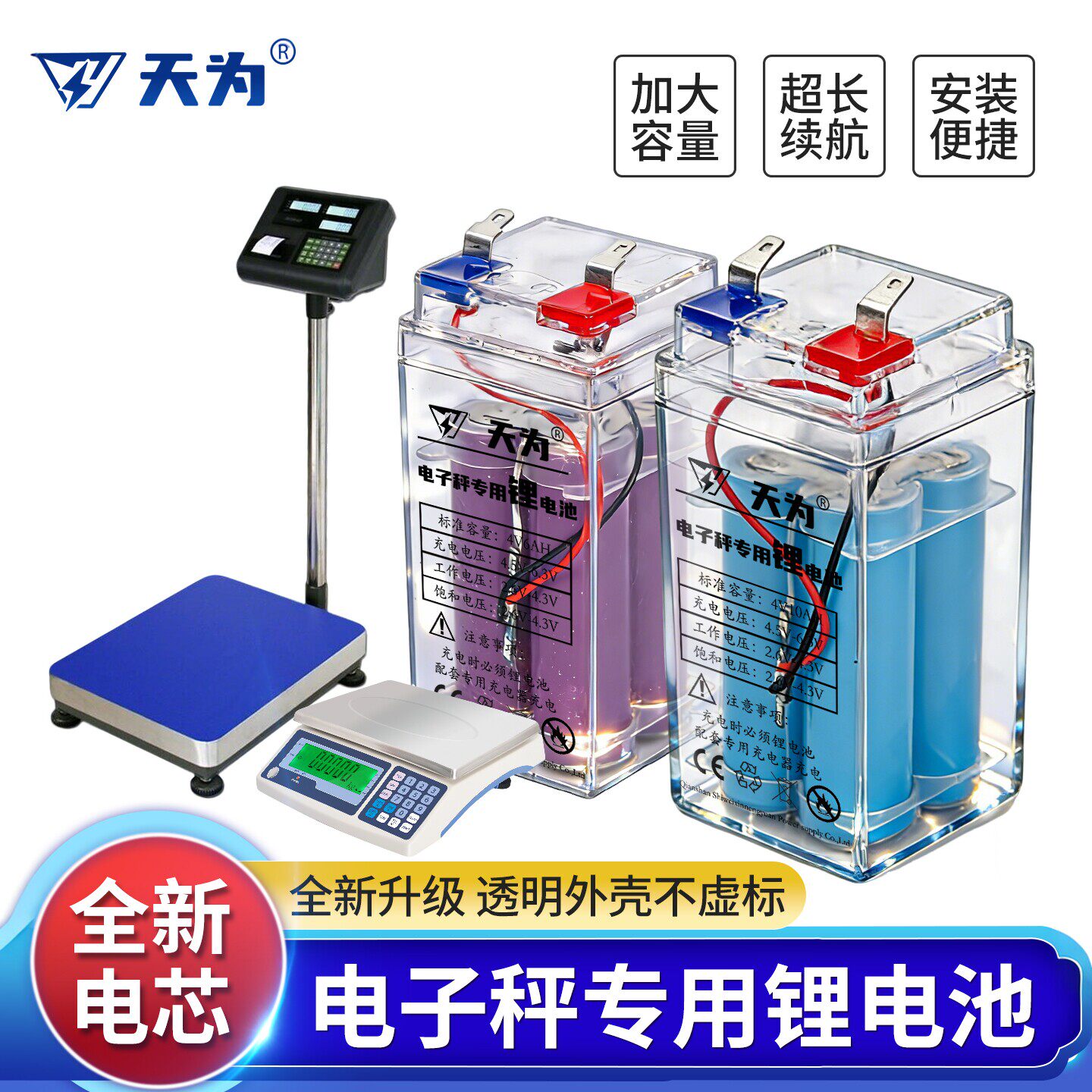 电子秤专用4V锂电池通用150公斤台秤称重商用磅秤4伏吊秤充电电瓶 - 品牌电池工厂直销店