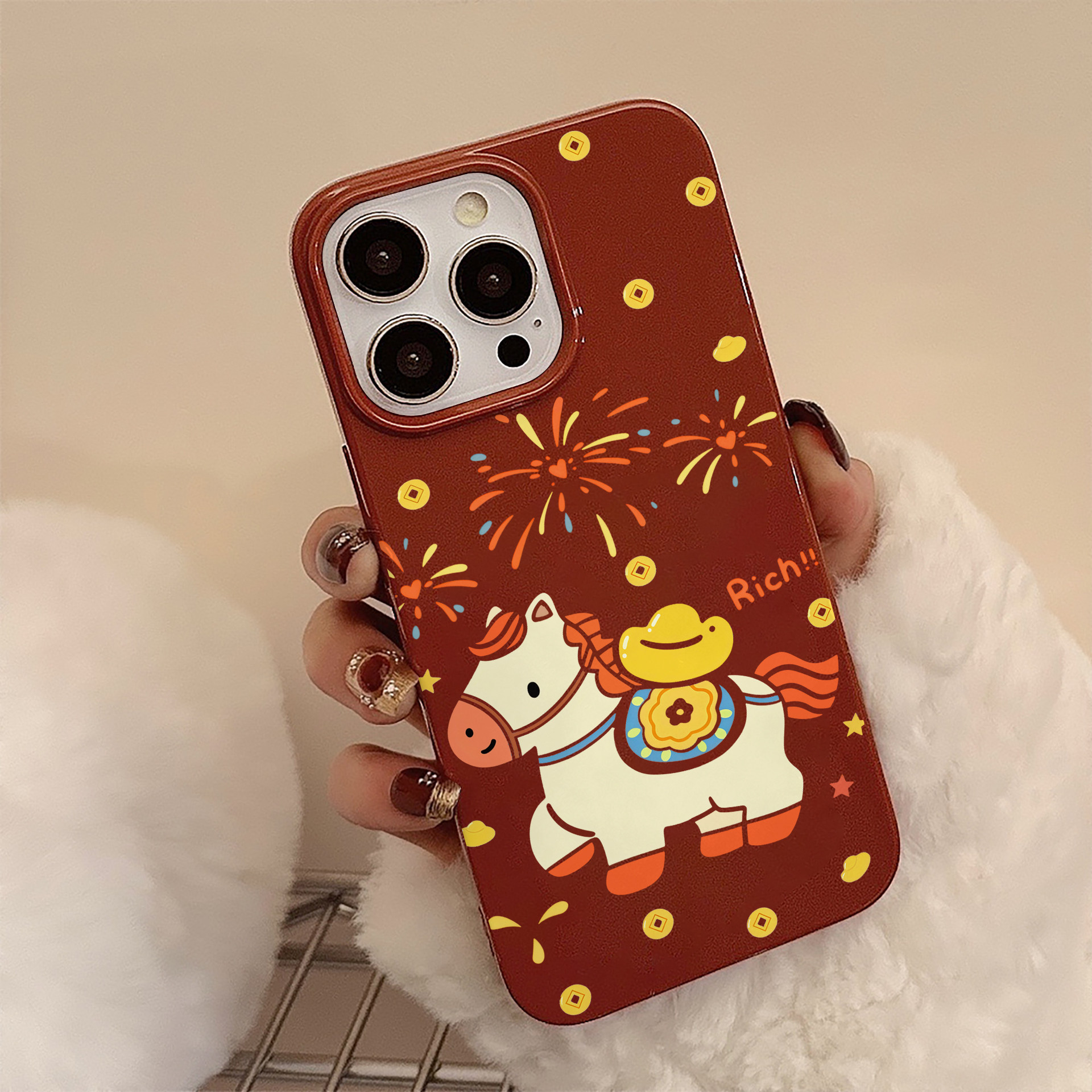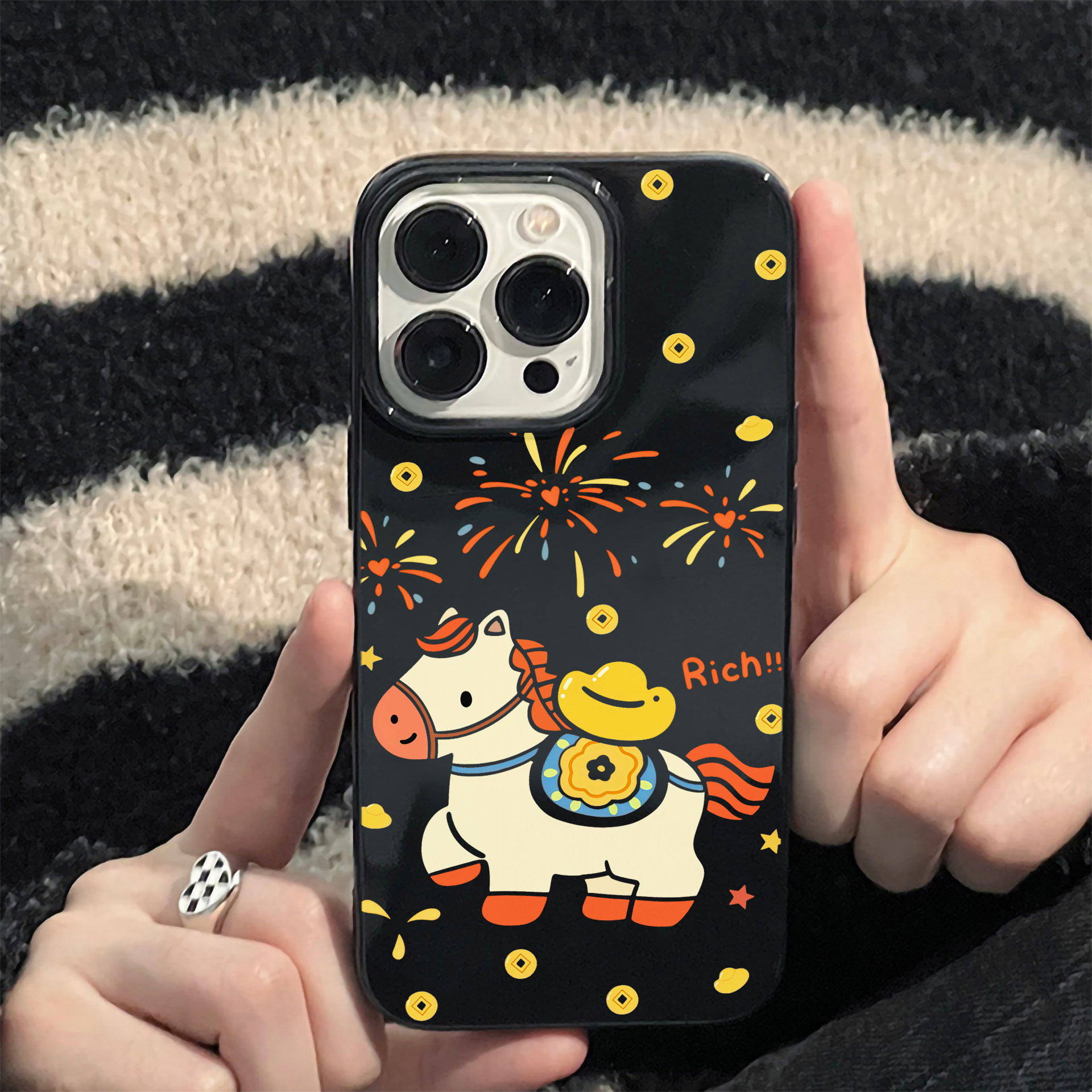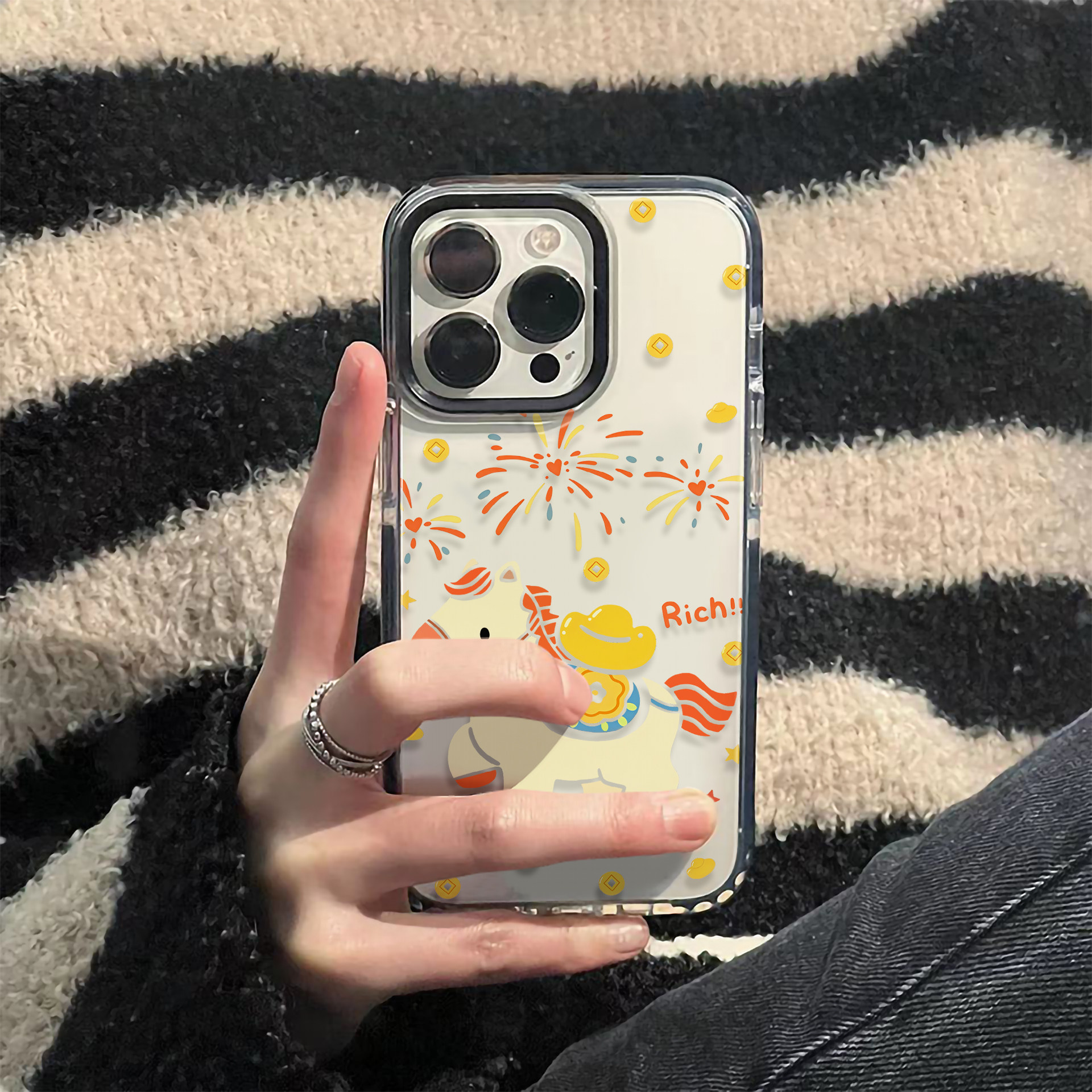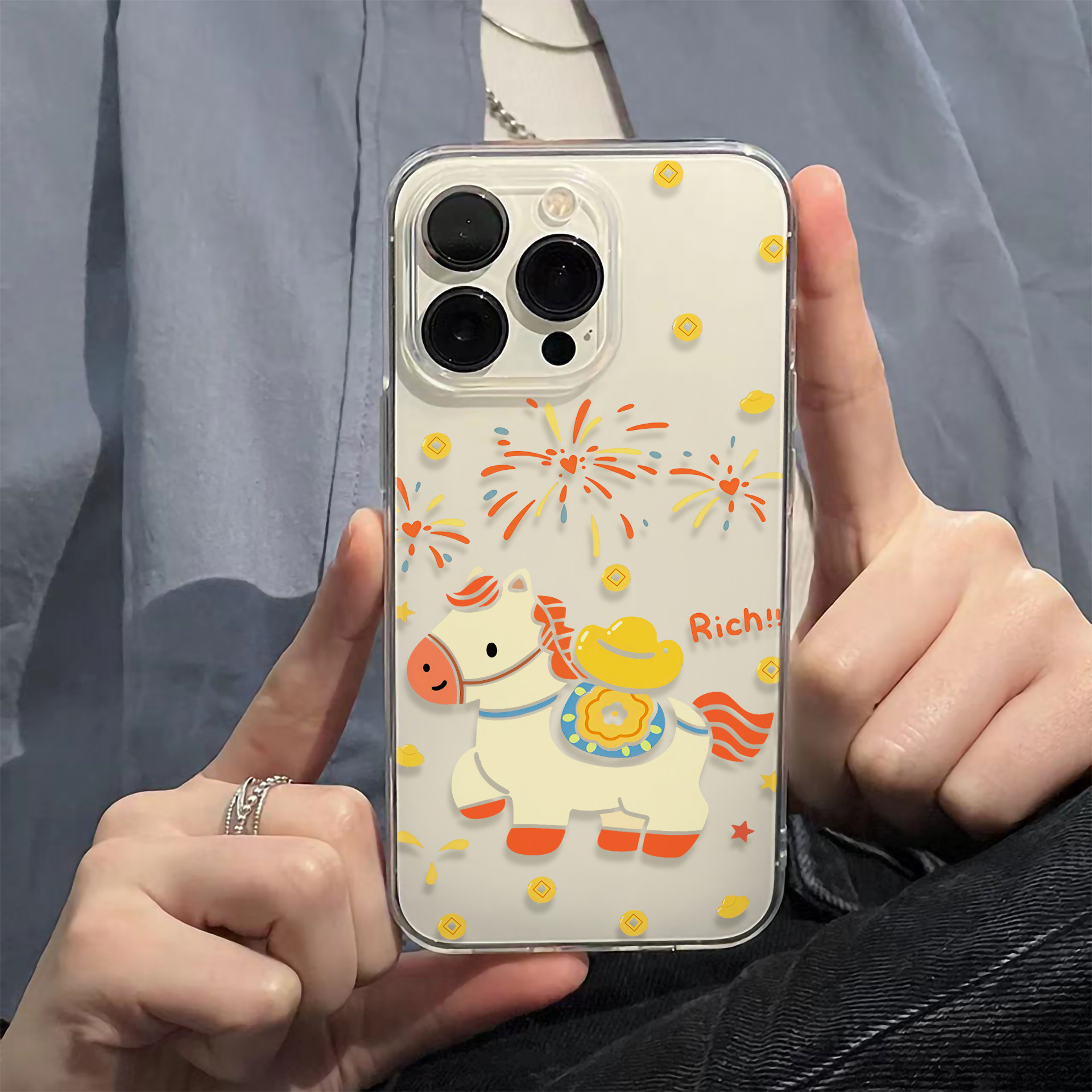 ins新年烟花元宝小马适用苹果17promax手机壳iPhone16pro透明软壳15防摔14小众13可爱12女11硅胶保护套XS磁吸 - 网红潮壳