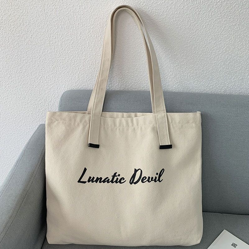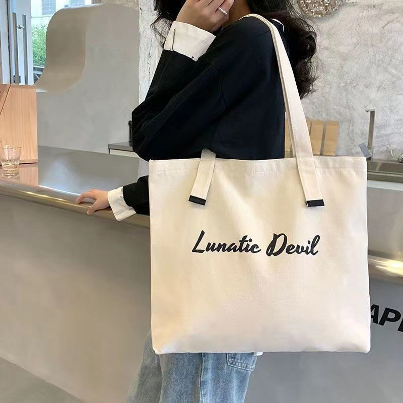 新款欧美风ins女帆布包简约大学生书包布袋单肩包加厚通勤电脑包 - 跳跳糖原创包包