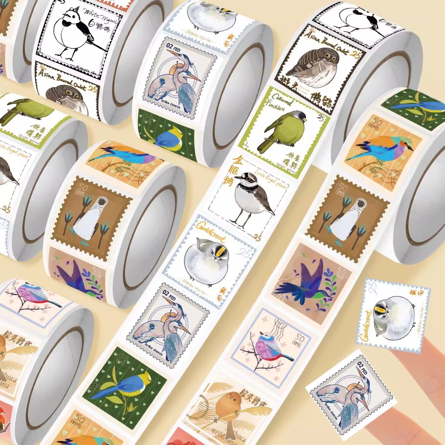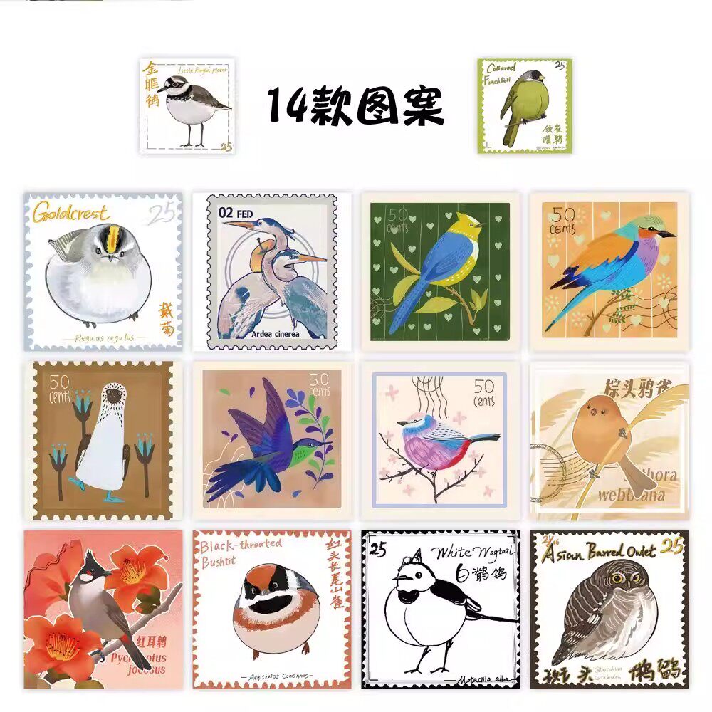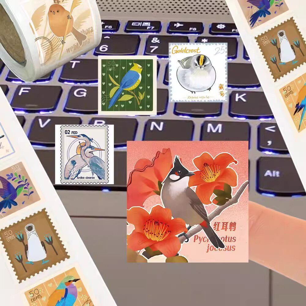 2000贴小鸟邮票高颜值ins卷卷贴鸟类纪念收藏邮票贴纸信封封口贴 - 可爱泡泡文化
