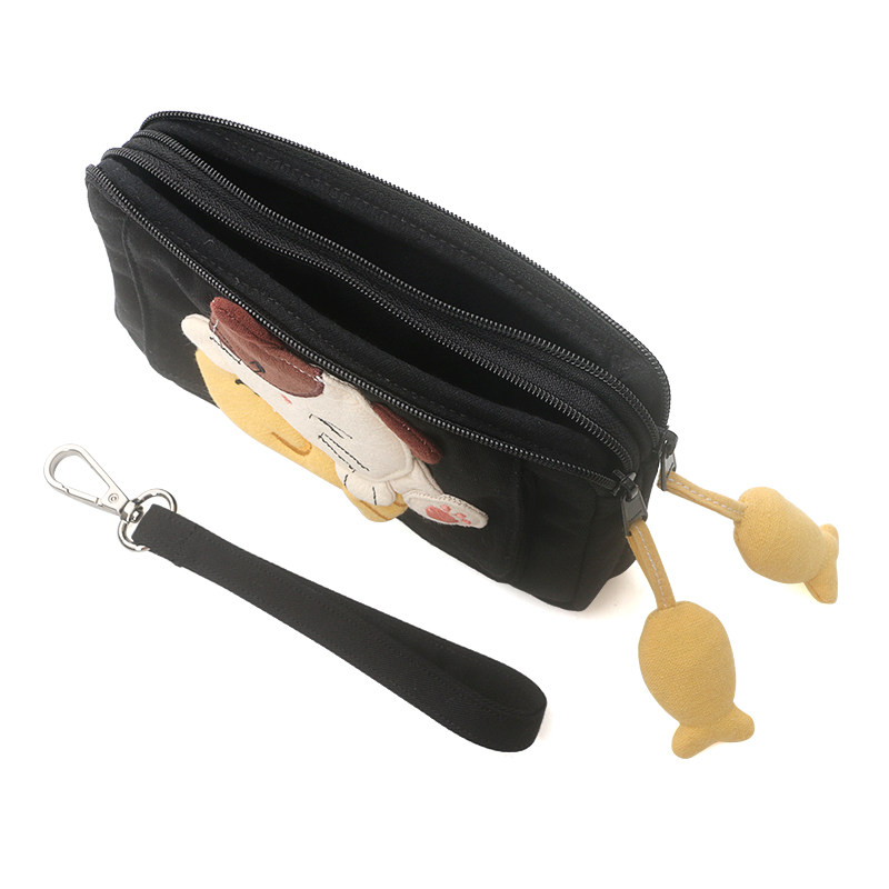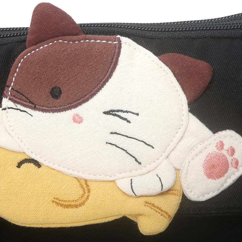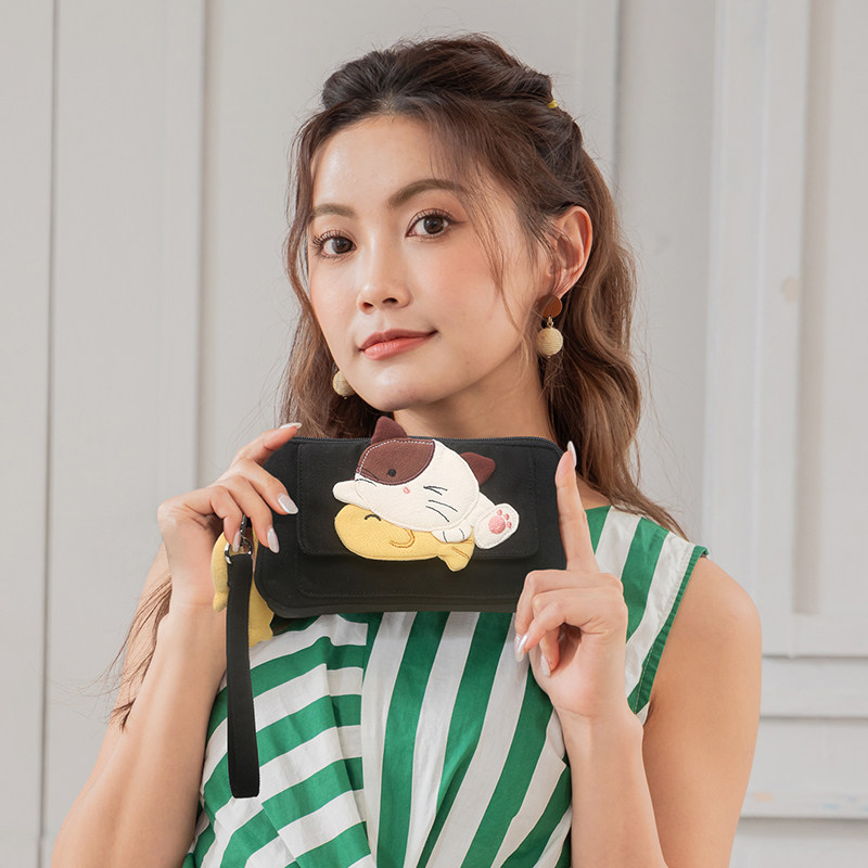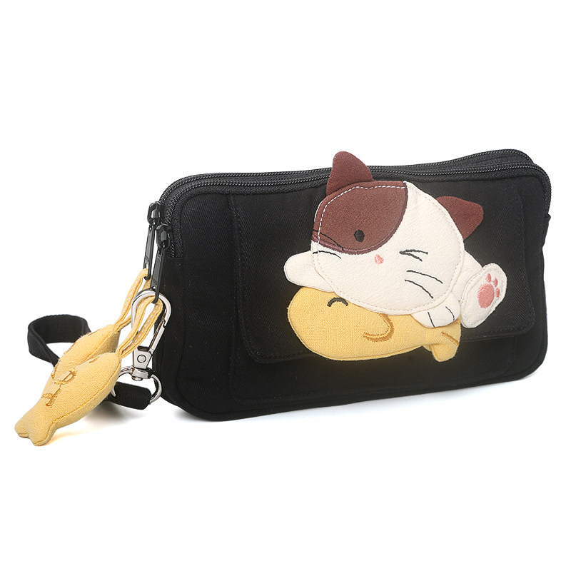 Kine猫 捉鱼猫手拿包双层拉链日系卡通棉布女小巧收纳包零钱卡包 - Kine猫原创猫咪品牌