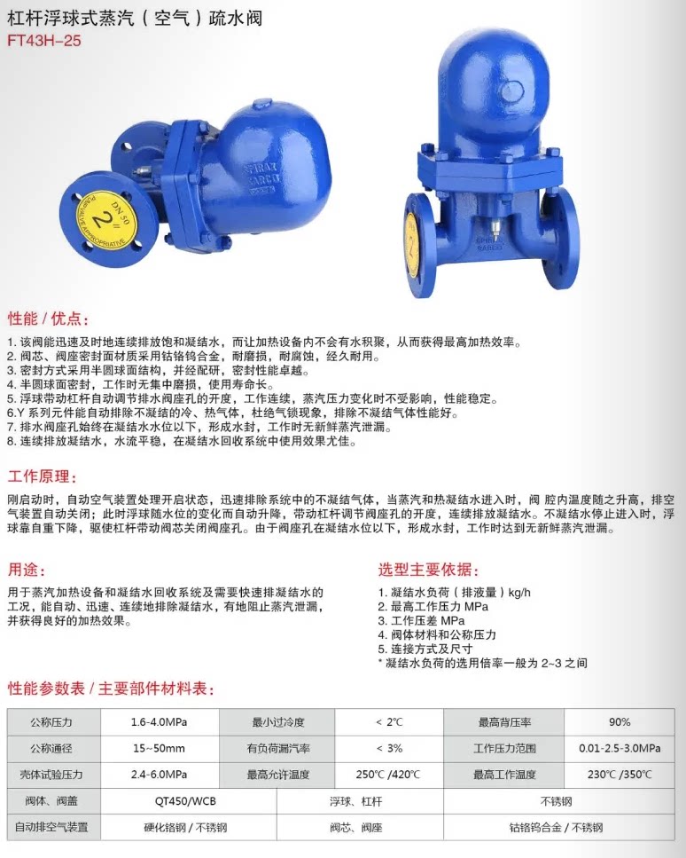 FT43H-16C大流量杠杆浮球式疏水阀法兰蒸汽自动排水器DN32 40 50 - 奥柯阀门