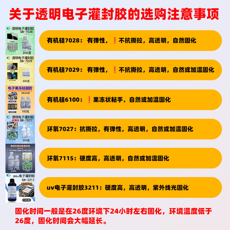 GN7027透明电子灌封胶抗撕拉防水电源接头LED电路板环氧树脂软胶 - GUINING硅宁企业店