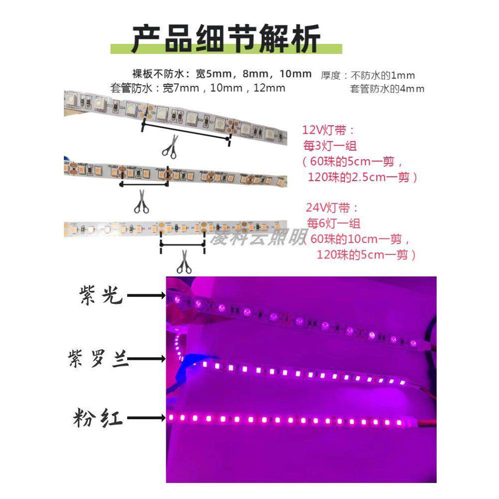 紫光紫罗兰粉色灯带 12V/24V2835裸板5050防水粉紫120珠LED软灯条 - 顺达五金商贸