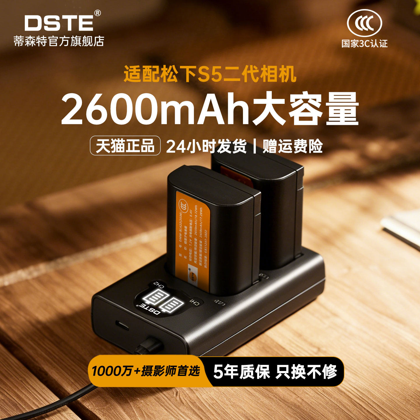 3C认证蒂森特DMW-BLK22相机电池 适用松下S5二代 DC-S5K S5M2 S9 GH7 GH6 GH5M2 S52X G9M2充电器 - 蒂森特旗舰店