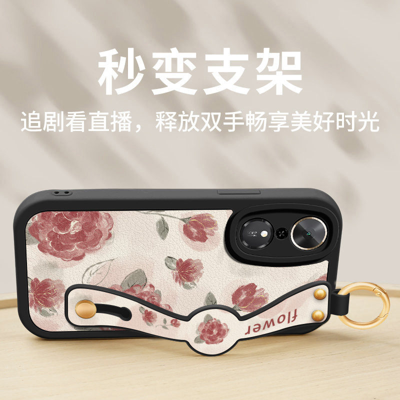 适用荣耀畅玩70plus手机壳华为honor70mPlus新款女生小羊皮防摔保护套红色玫瑰腕带支架挂绳硅胶LOG-AN00软壳 - 御畅数码旗舰店