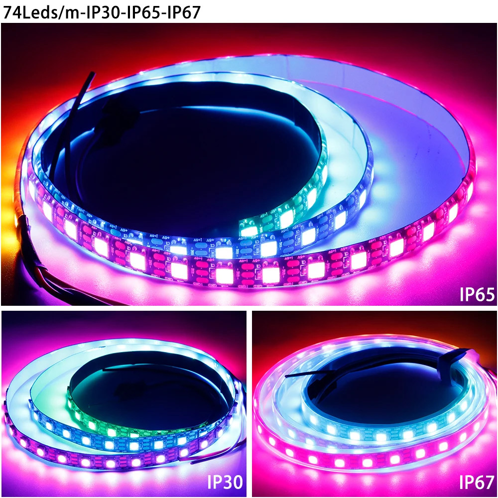 您的位置:安康生态农业开发平台  >   >  10mm宽5V内置IC幻彩LED灯带74灯每米5050rgb炫彩单点单控软灯条