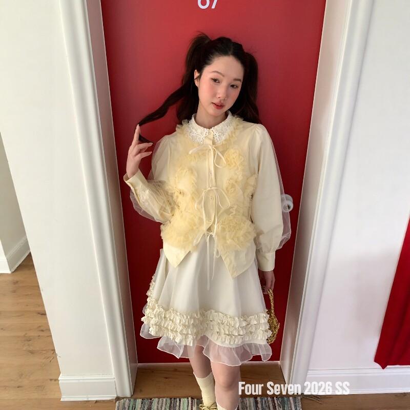 您的位置:安康生态农业开发平台  >   >  FOUR SEVEN 2026SS 韩系chic百搭显瘦蕾丝花边领网纱灯笼袖衬衫
