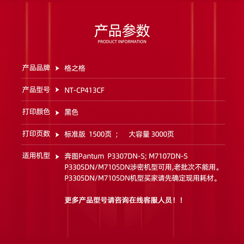 【tl-413粉盒】适用奔图DL-413硒鼓P3305DN 3307 M7105 M7107墨粉 - 威众工厂